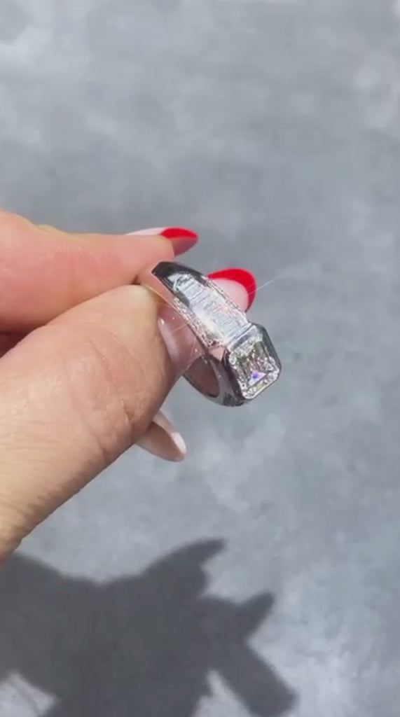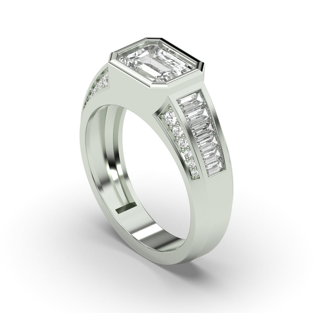 Men's Jewelry - Men's VVS Lab Diamond Emerald Cut Engagement Ring | White Gold