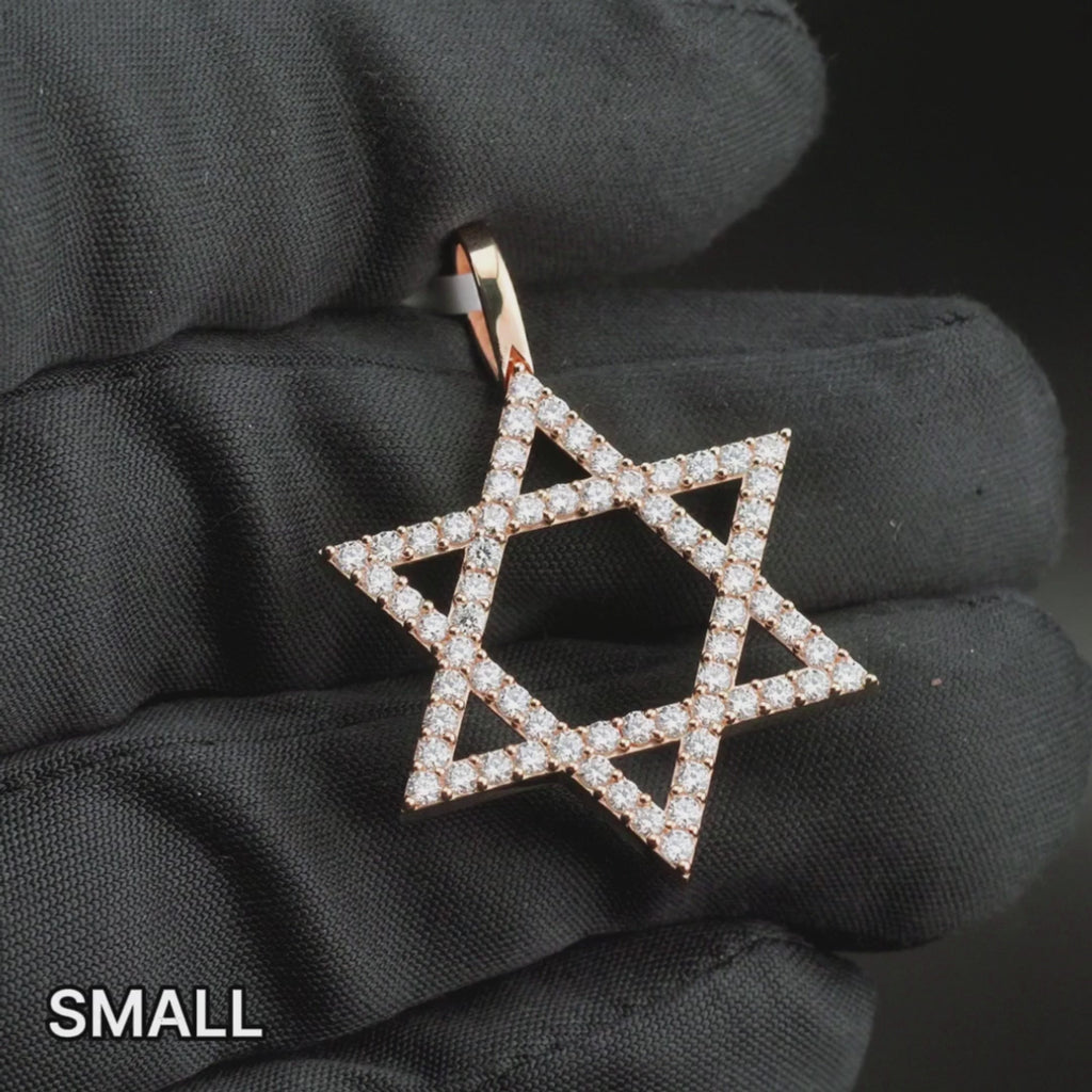 The Star of David pendant is handset with lab grown diamonds in D–F color and VVS clarity, offering elite brightness and a radiant, crystal-clear sparkle. Our lab grown diamonds share the exact same chemical composition, crystal structure, hardness, and brilliance as natural diamonds—making them a responsible and high-value choice with 100% conflict-free origins.