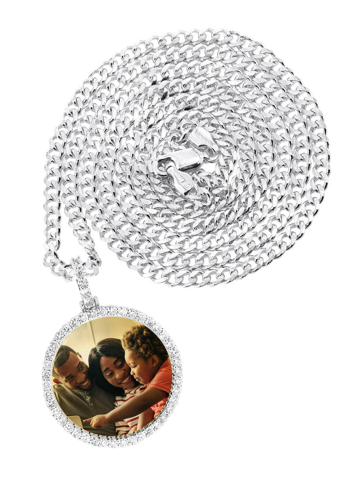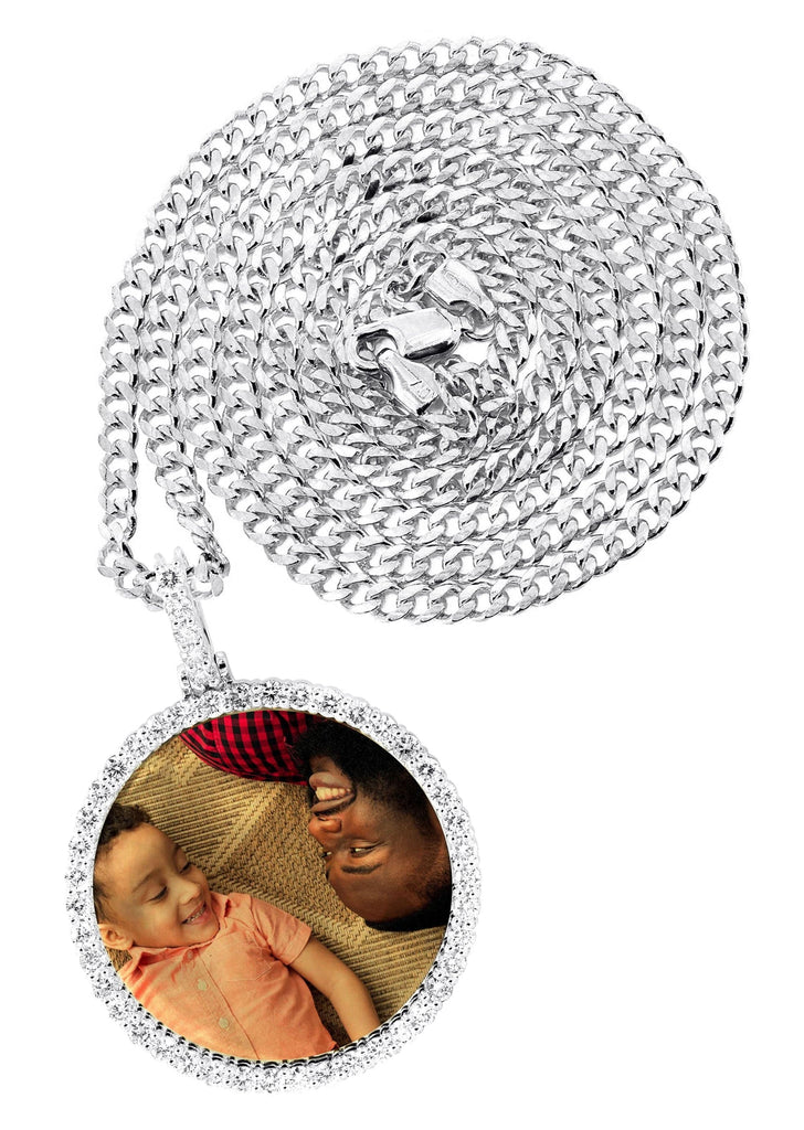 Full Diamond 10K White Gold Medium Round Picture Pendant Necklace | 1.88 Carats | Appx. 19 Grams