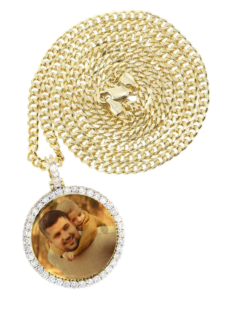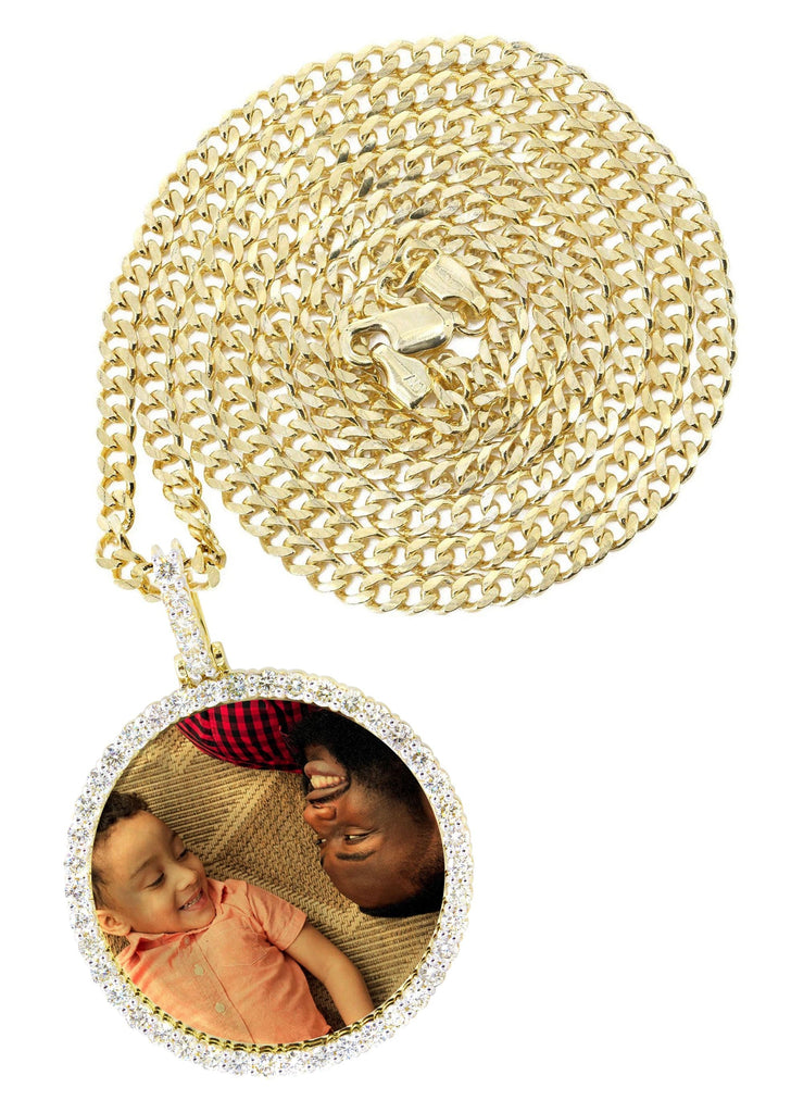 Full Diamond 10K Yellow Gold Small Round Picture Pendant Necklace | 1.45 Carats | Appx. 16 Grams