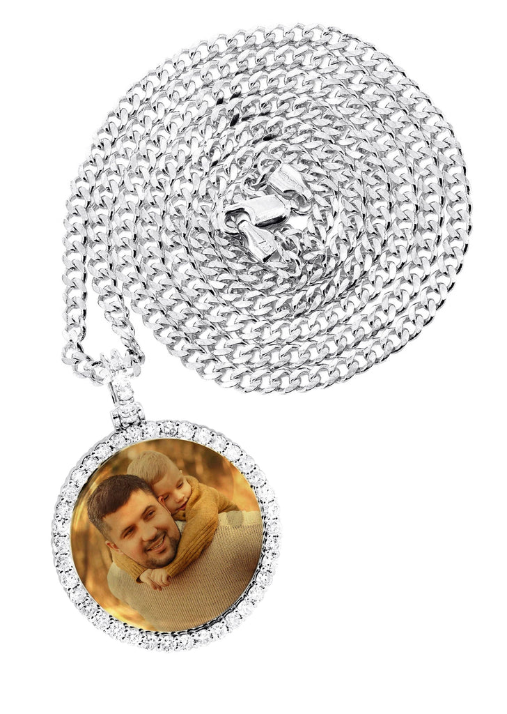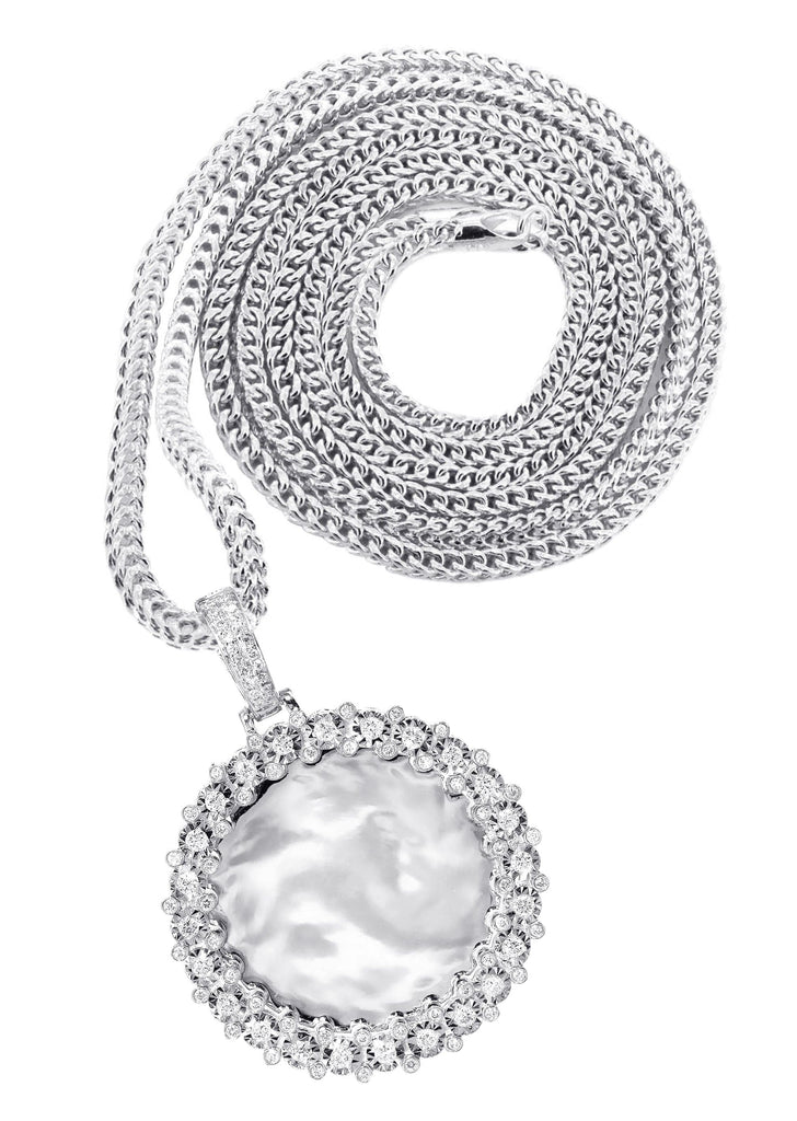 Full Diamond 10K White Gold Small Round Picture Pendant Necklace | 1.45 Carats | Appx. 16 Grams