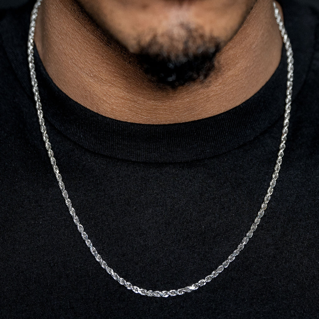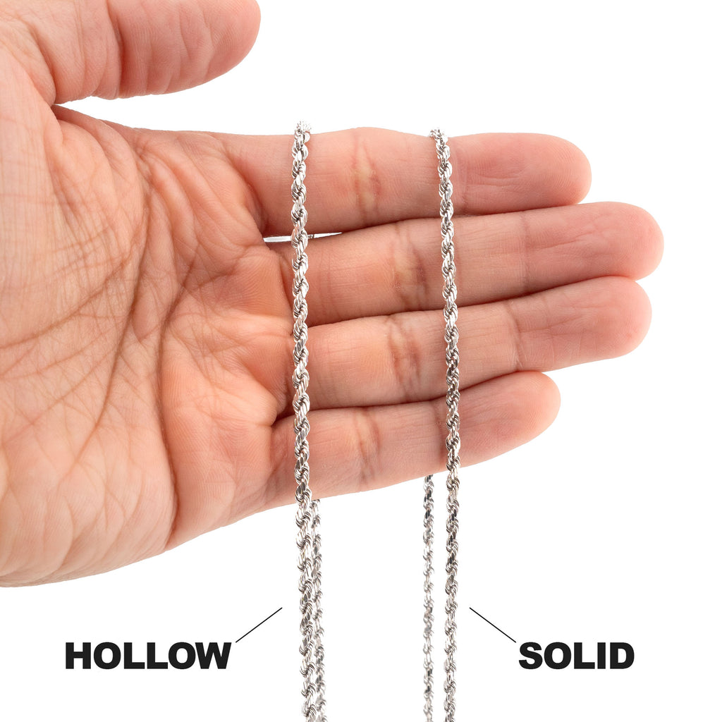10k gold ( .417 purity real gold ) White Rope link chain. The chain can customized to be hollow or solid depending on budget. Choose your chain type and length and the price will adjust above. The gram weight of the chain will adjust once you select chain type and length