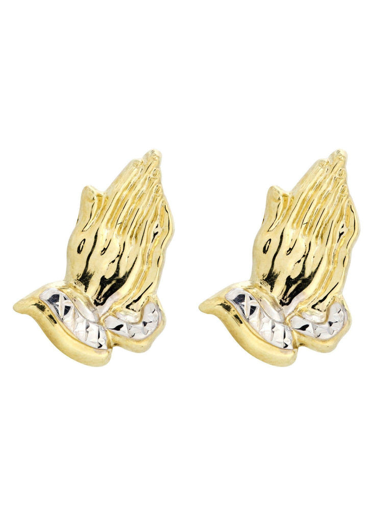 10K Praying Hands Gold Earrings For Men | Appx 5/8 Inches Wide