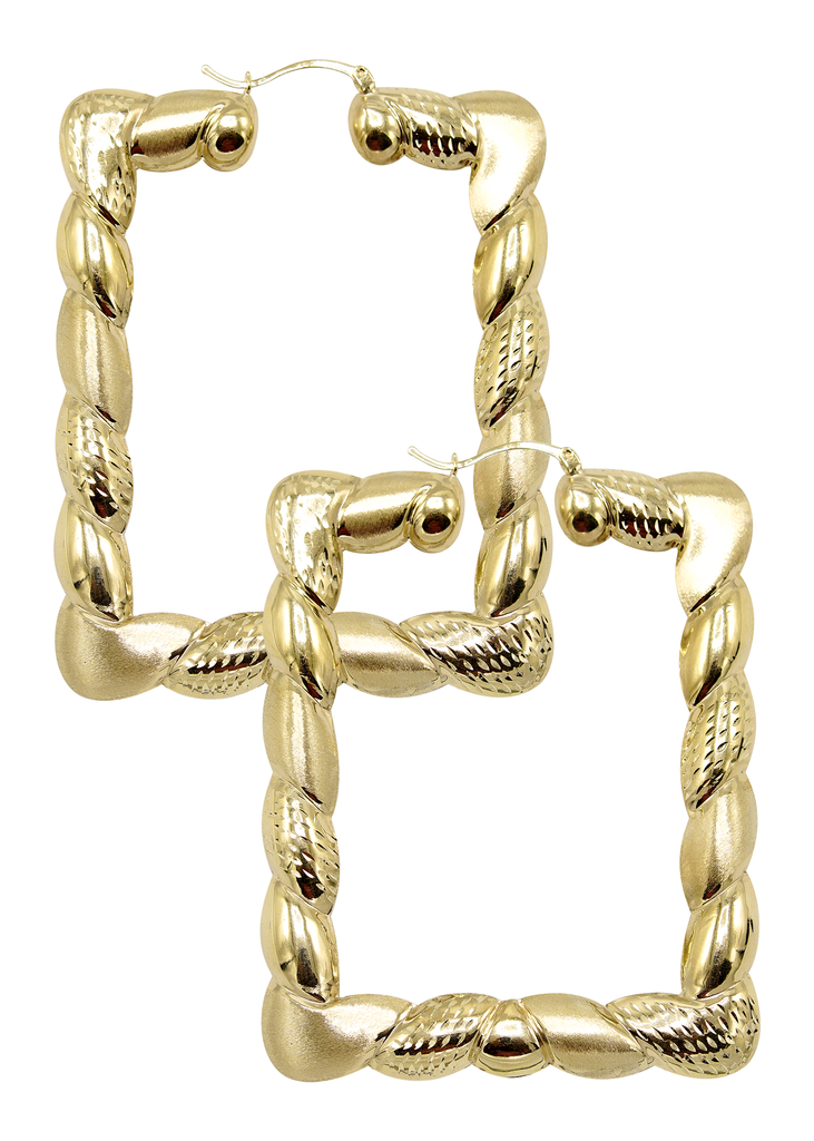 10K Womens Bamboo Gold Hoop Earrings | Customizable Size