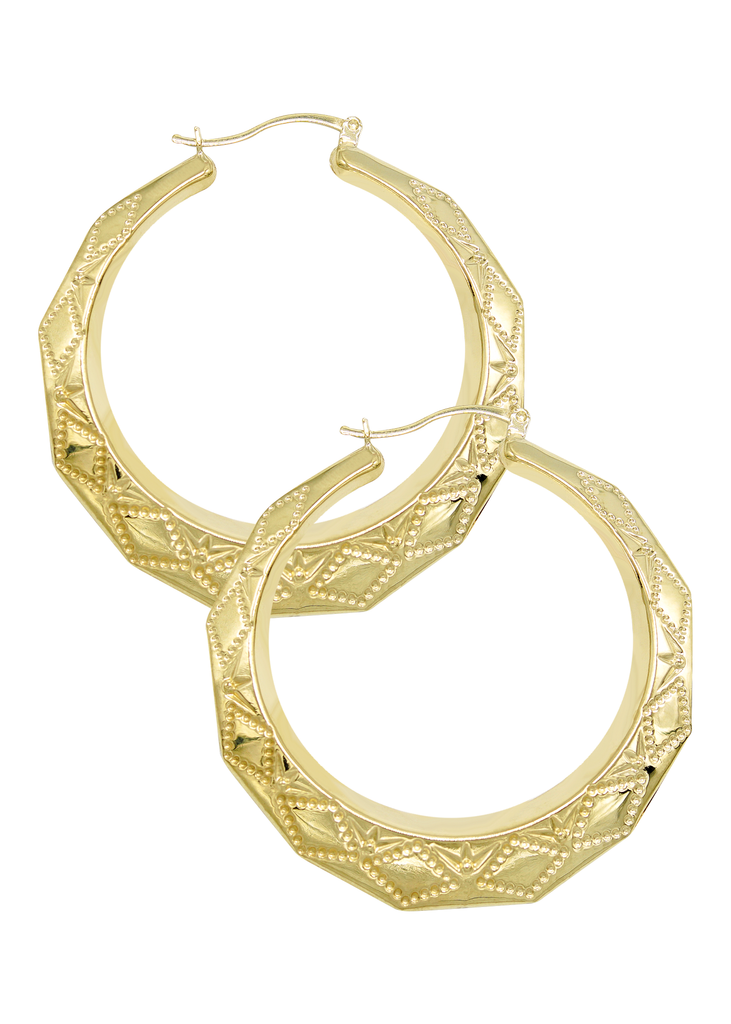 10K Gold Diamond Cut Hoop Earrings | Customizable Size