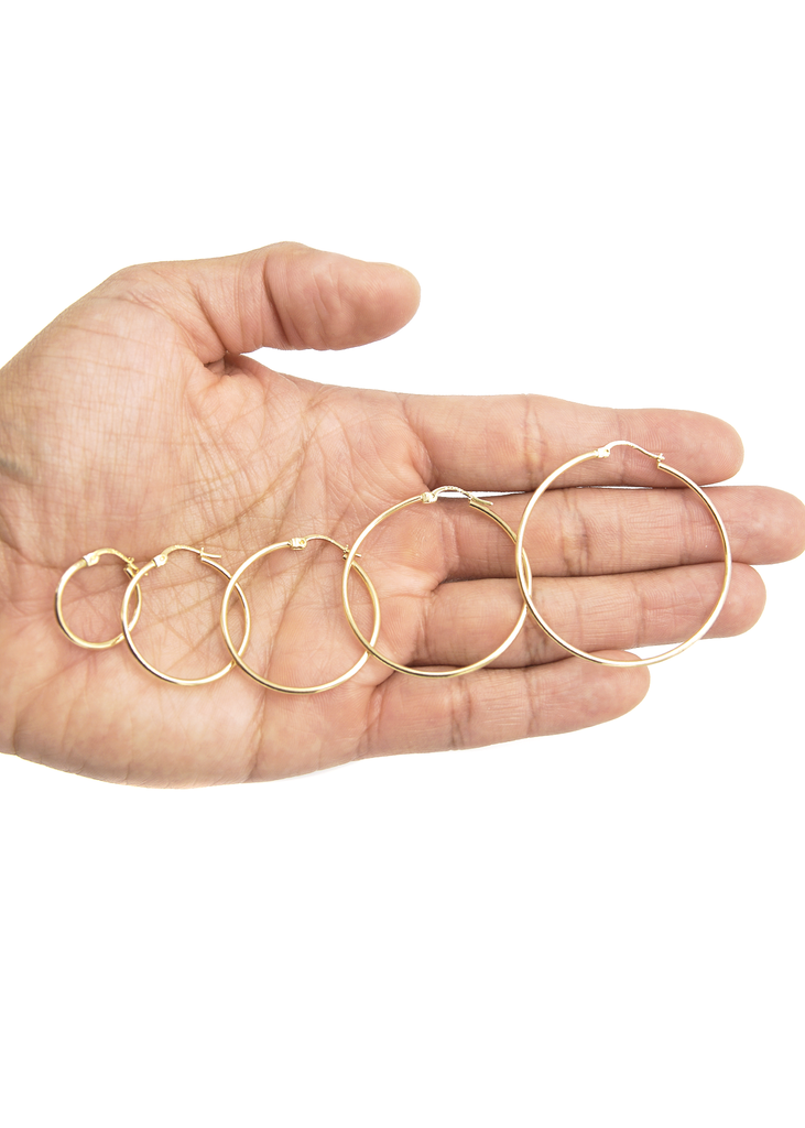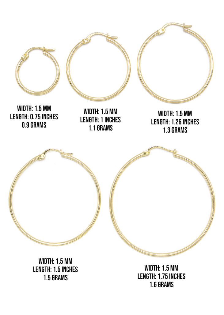 10K Gold Italian Made Hoops. Available in different sizes. See image for size & weight