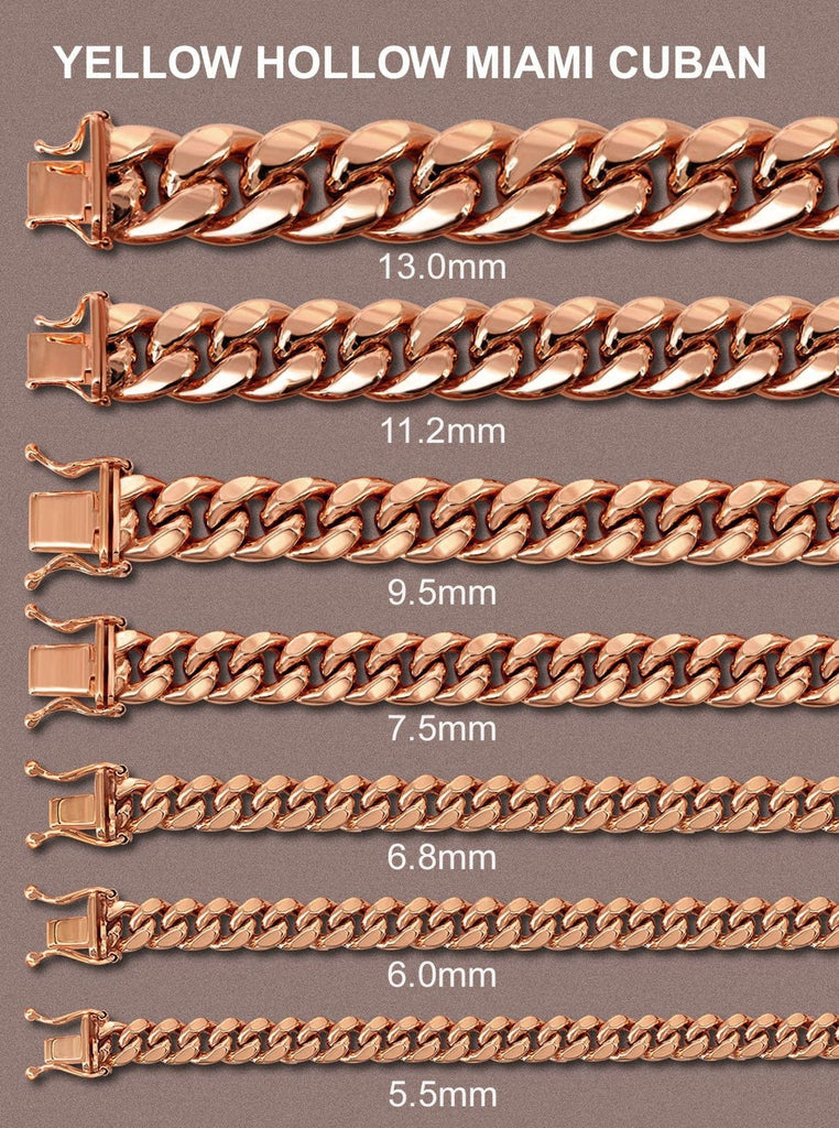 Rose Semi Solid Miami Cuban Chain | 14K Rose Gold. This chain is fully customizable, so you can pick your length and width above. Once you selected your length and width, you can see the adjusted gram weight above the price.