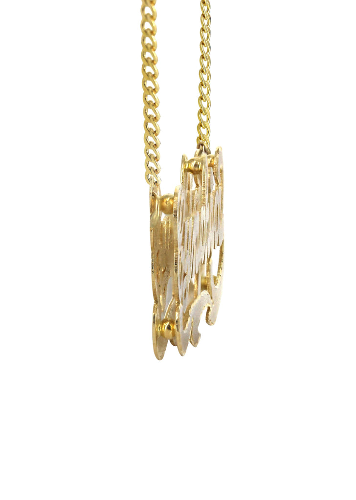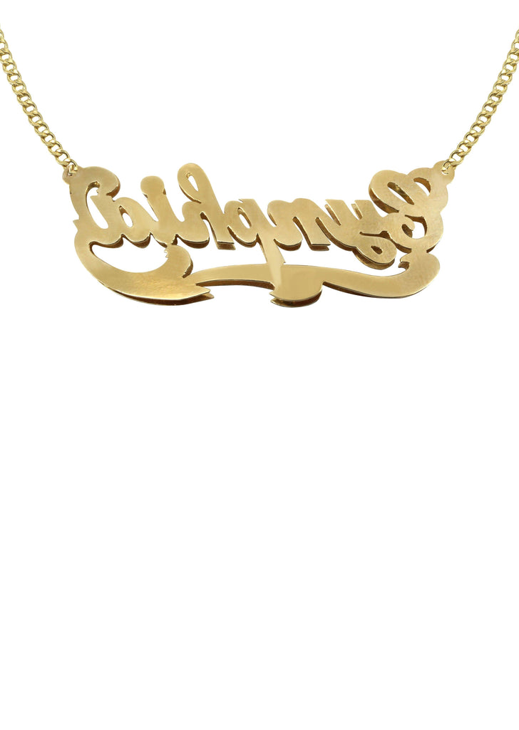 14K Ladies Diamond Cut Name Plate Necklace. The length of the pendant is 0.7 inches and the width is 1.9 inches. The name plate comes with a cuban chain which can be selected to any length above. Due to the custom nature of this product, please allow 10-14 business days for completion.