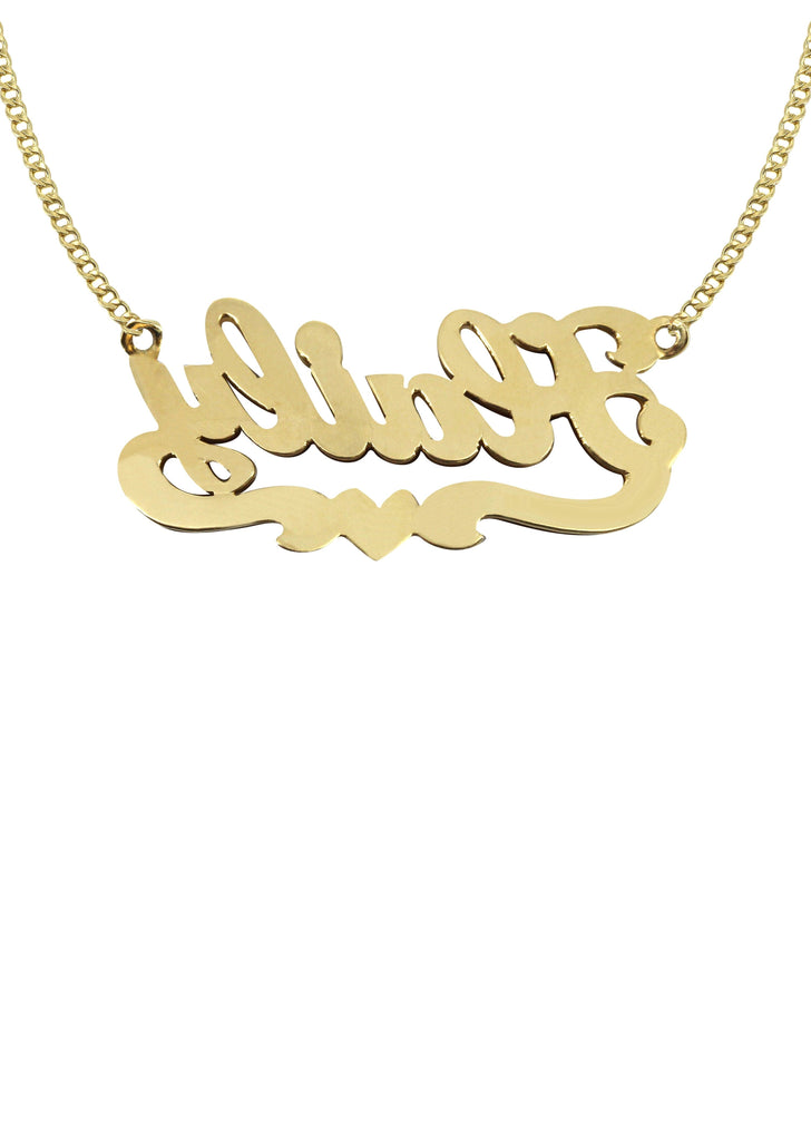 14K Ladies Diamond Cut with Diamonds Name Plate Necklace. The length of the pendant is 0.5 inches and the width is 1.2 inches. The name plate comes with a cuban chain which can be selected to any length above. Due to the custom nature of this product, please allow 10-14 business days for completion.