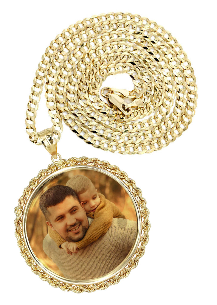 10K/14K Yellow Gold Large Round Picture Pendant Necklace