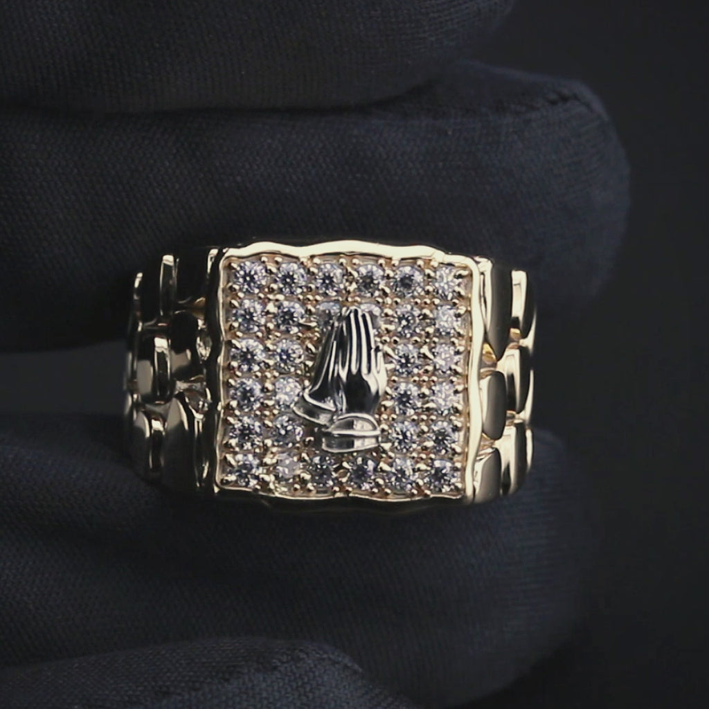 10K Gold Cz Praying Hands Ring For Men | 5 Grams