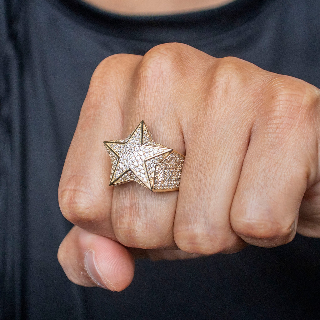 10K Gold Cz Star Ring For Men | 9.3 Grams