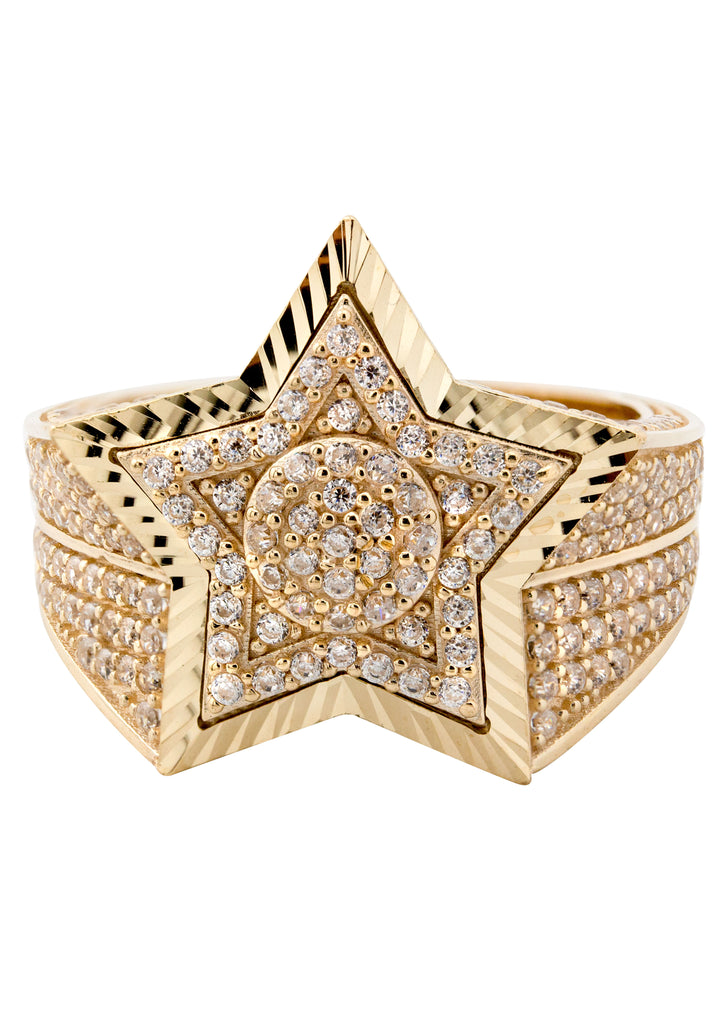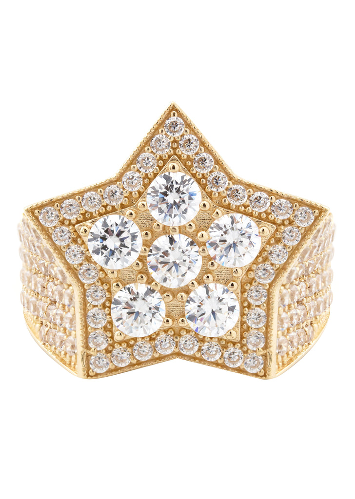 10K Gold Cz Star Ring For Men | 6.6 Grams