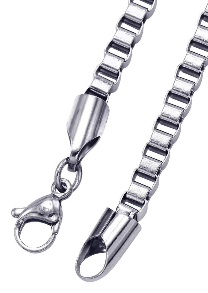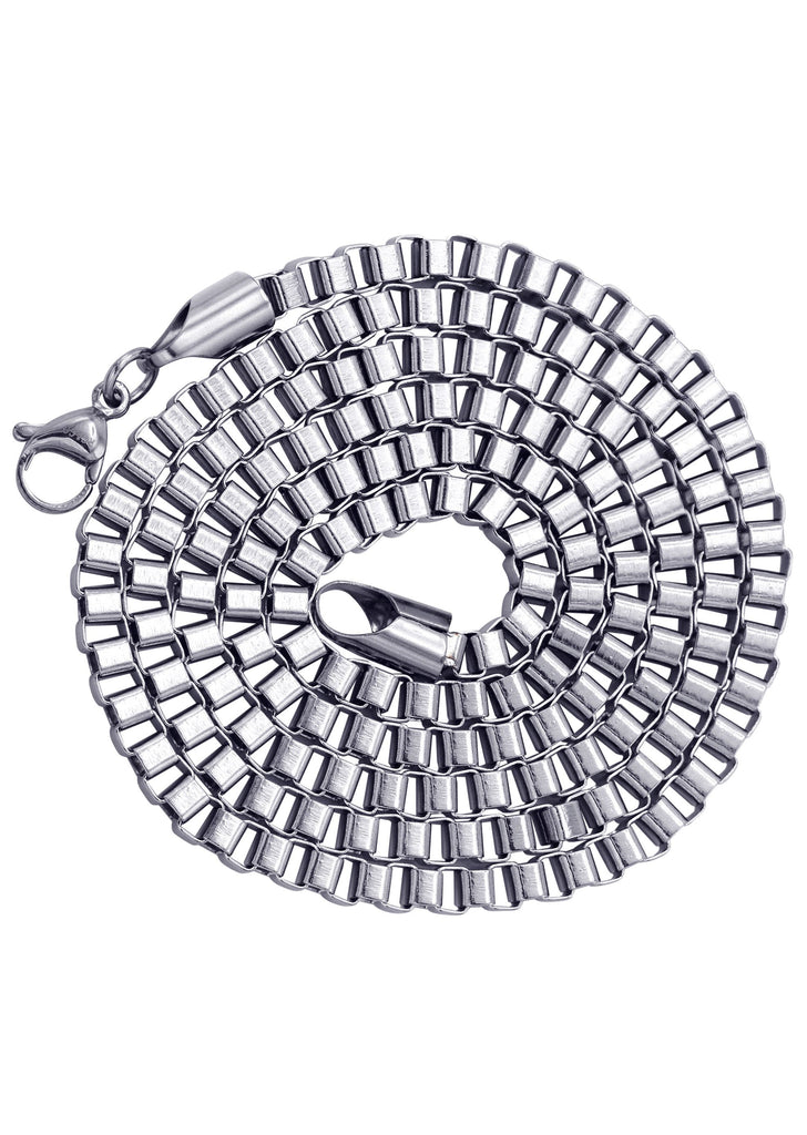 White Gold Plated Mens Box Chain. The Chain can be customized to any width and length by selecting the options above. Once you select your length and width, the price and the weight will adjust.