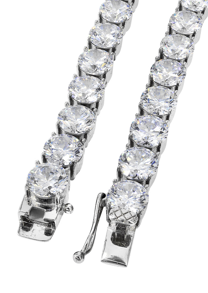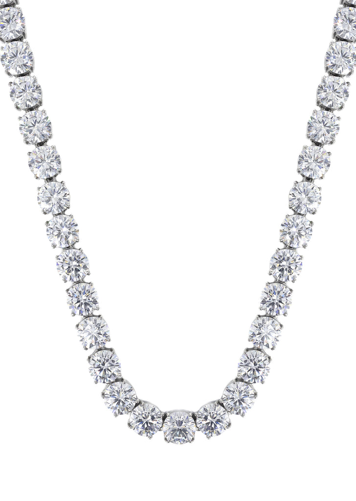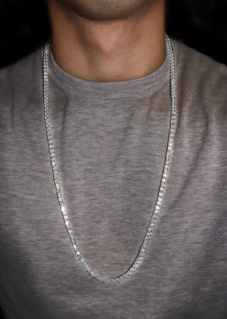 White Gold Plated Mens Tennis Chain. The Chain can be customized to any width and length by selecting the options above. Once you select your length and width, the price and the weight will adjust.