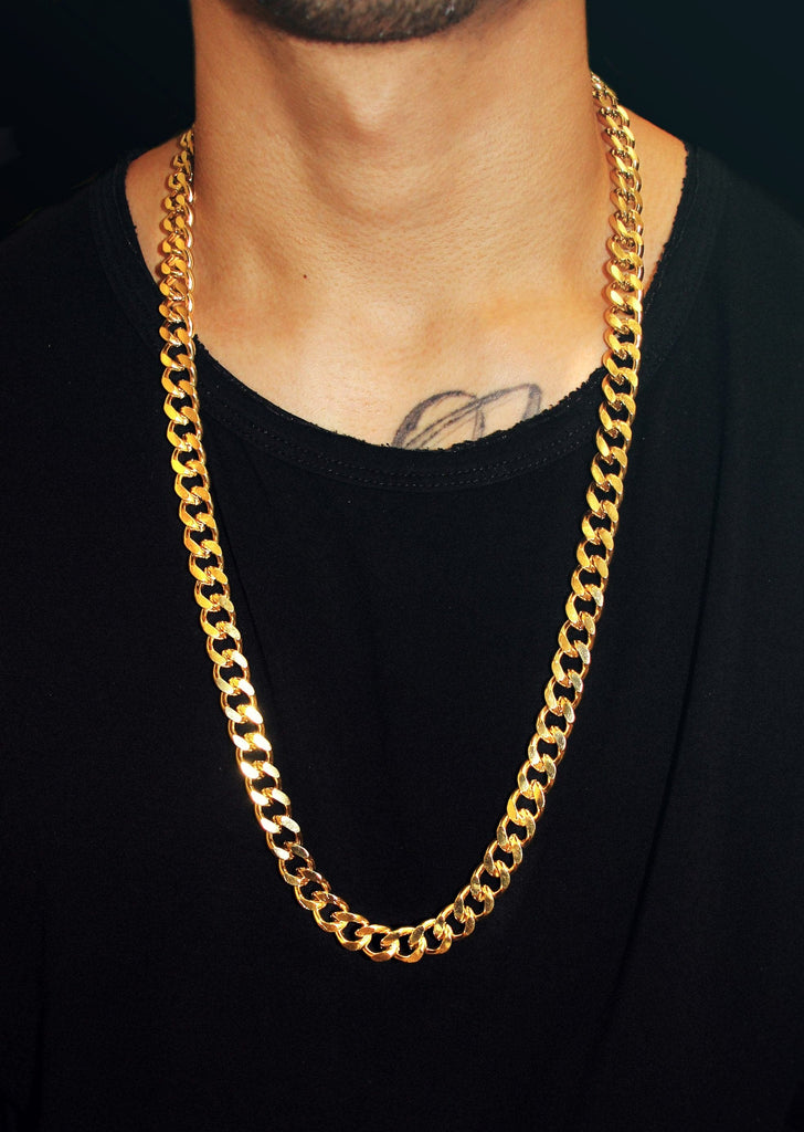Gold Plated Mens Cuban Curb Link Chain. The Chain can be customized to any width and length by selecting the options above. Once you select your length and width, the price and the weight will adjust.