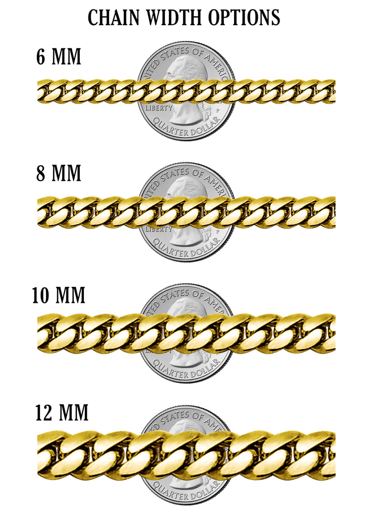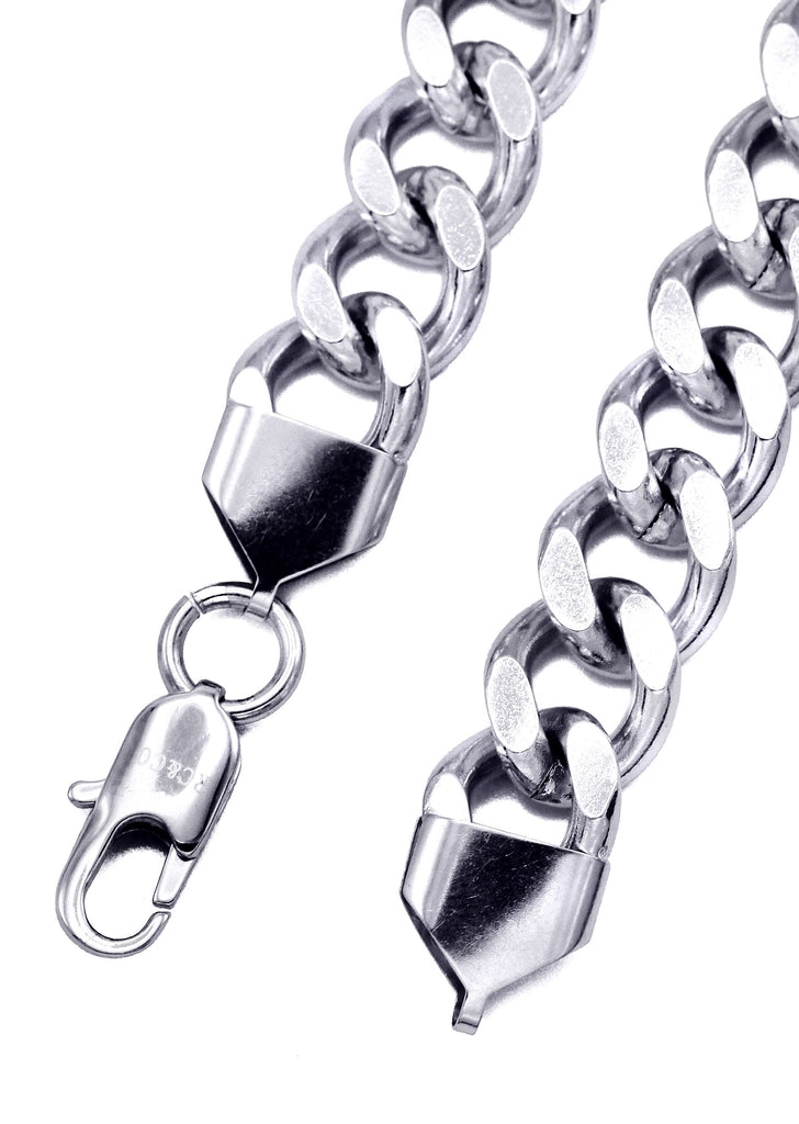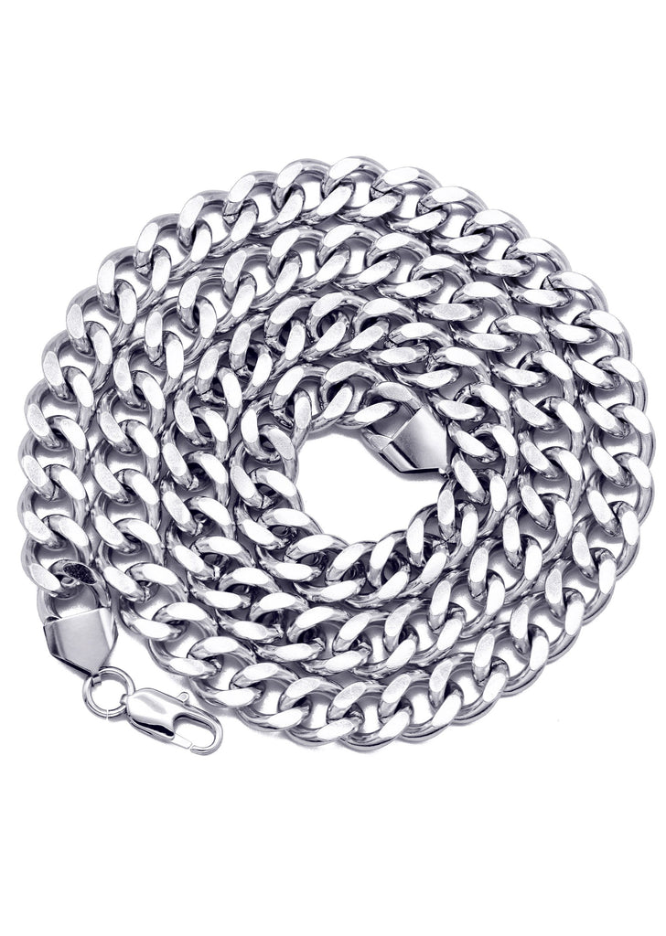 White Gold Plated Mens Cuban Curb Link Chain. The Chain can be customized to any width and length by selecting the options above. Once you select your length and width, the price and the weight will adjust.