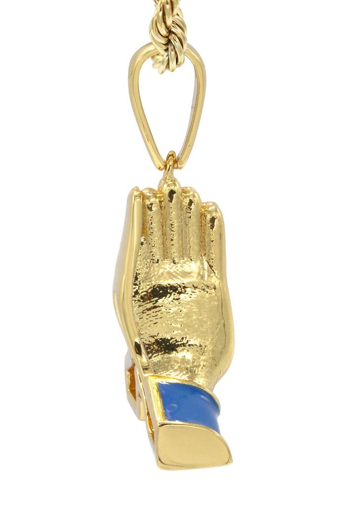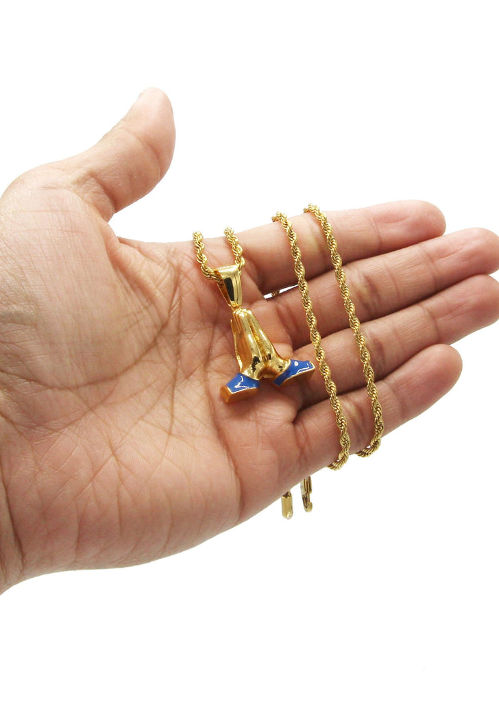 Gold Plated Rope Chain & Emoji Pendant Which weighs 22.2 Grams. The Width Of The Pendant Is 1 Inches And The Length Of The Pendant Is 1.5 Inches. The Width Of The Chain Is 3mm And The Length Can Be Adjusted Above.