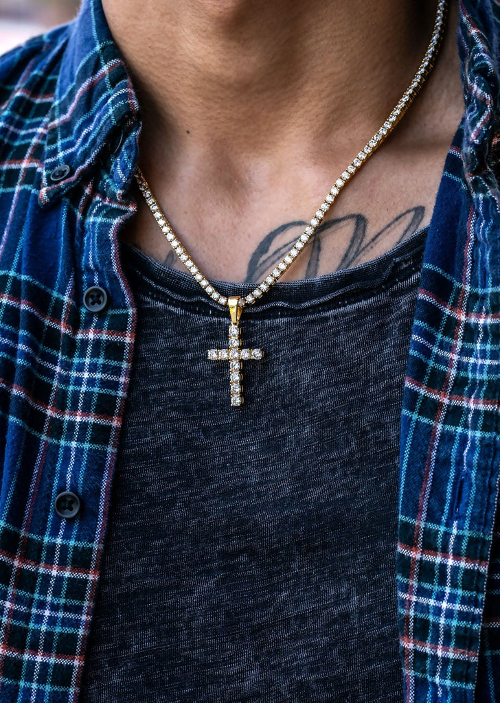 Gold Plated Iced Out Cross & Tennis Chain ( 3 MM )