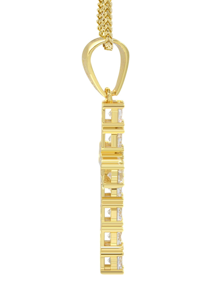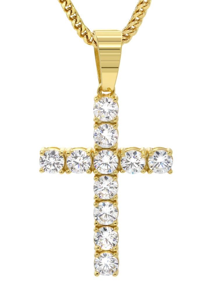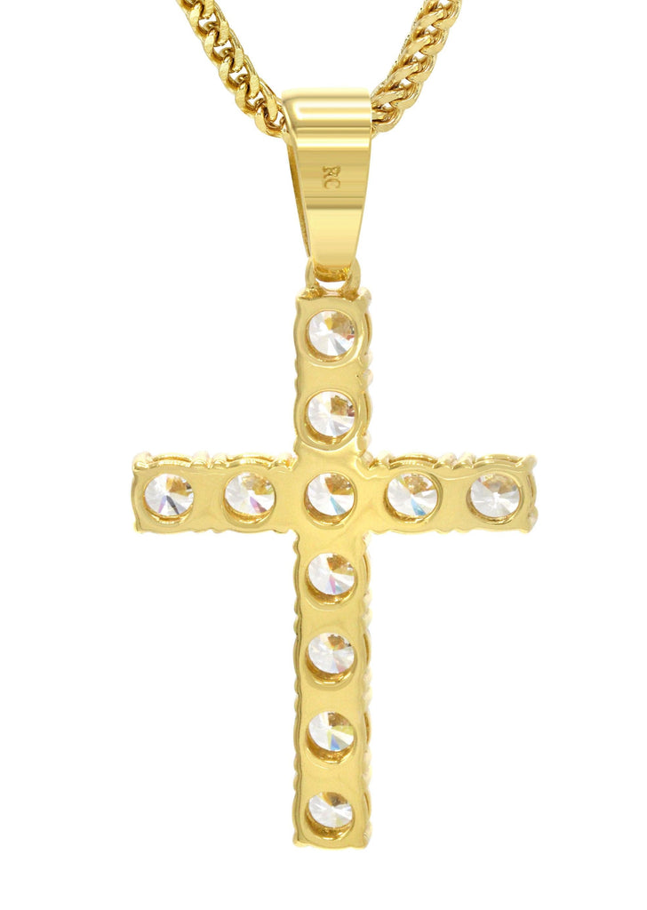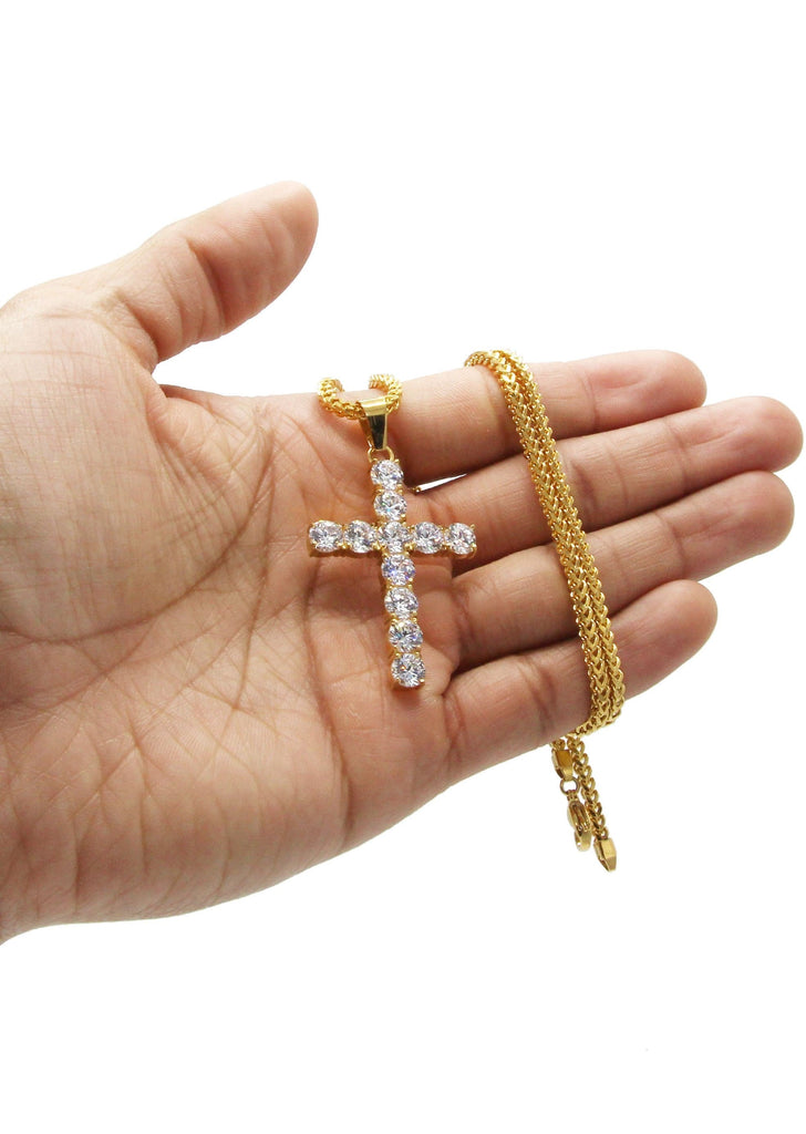 Gold Plated Franco Chain & Cross Pendant Which weighs 13 Grams. The Width Of The Pendant Is 0.85 Inches And The Length Of The Pendant Is 1.6 Inches. The Width Of The Chain Is 3mm And The Length Can Be Adjusted Above.