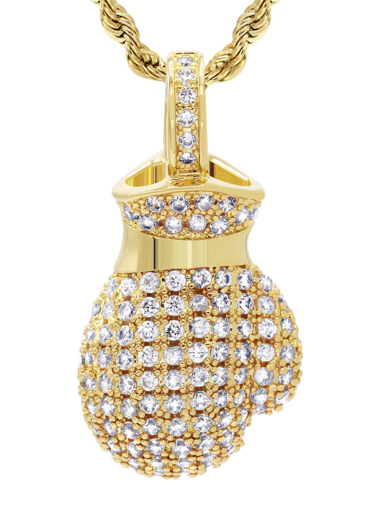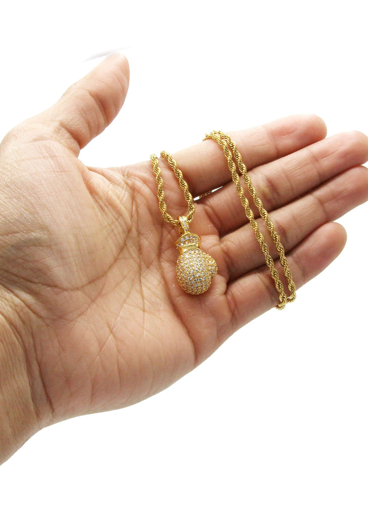 Gold Plated Rope Chain & Boxing Glove Pendant Which weighs 20.2 Grams. The Width Of The Pendant Is 0.6 Inches And The Length Of The Pendant Is 1.2 Inches. The Width Of The Chain Is 3mm And The Length Can Be Adjusted Above.