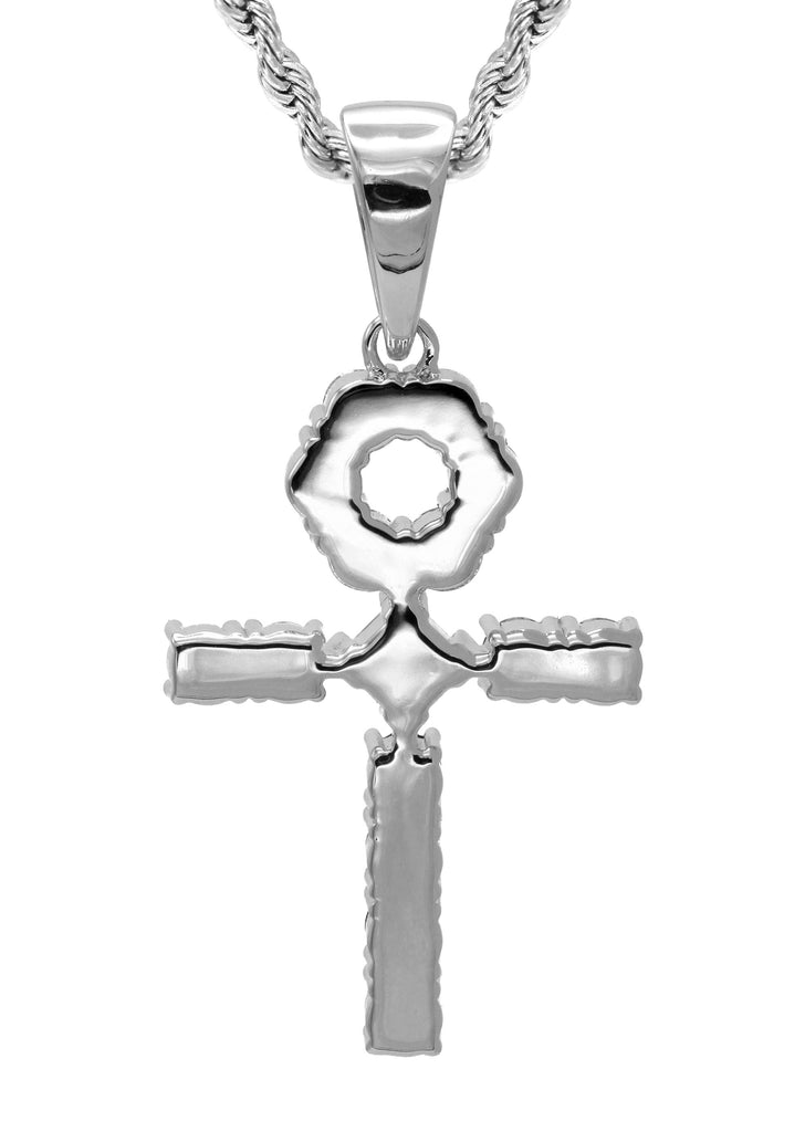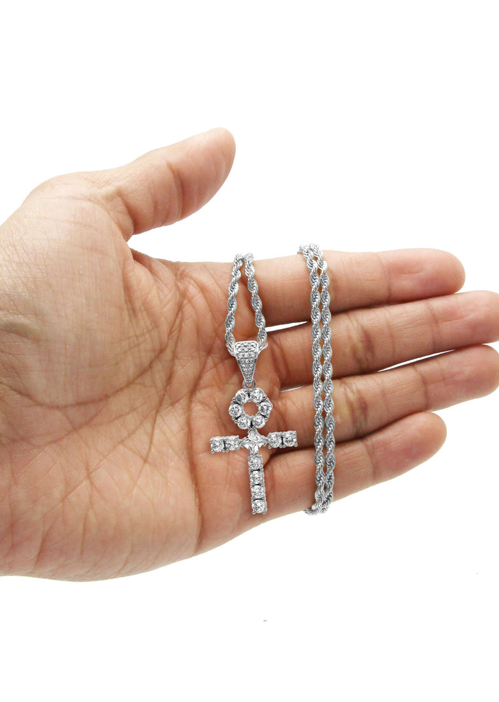 White Gold Plated Rope Chain & Ankh Pendant | Appx. 10 Grams
