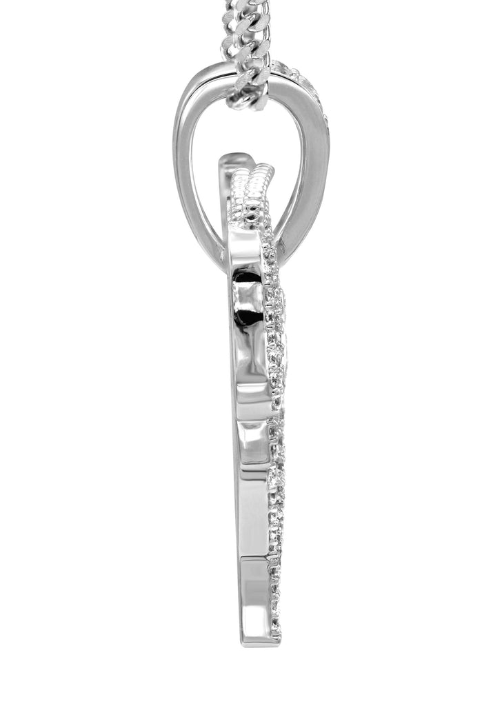 White Gold Plated Cuban Link Chain & Goat Pendant | Appx. 14.5 Grams
