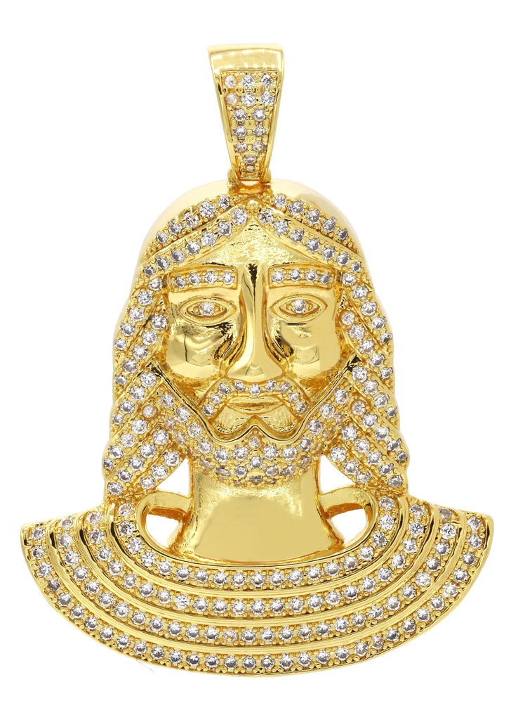 Mens Gold Plated Jesus Head Pendant | 14.1 Grams