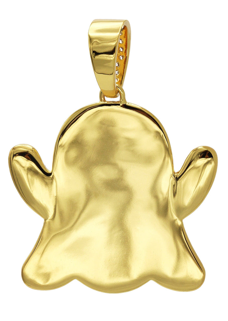 Gold Plated Ghost Emoji Pendant That Weighs 18.2 Grams. The Length Of The Pendant Is 1.67 Inches And The Width is 1.3 Inches.