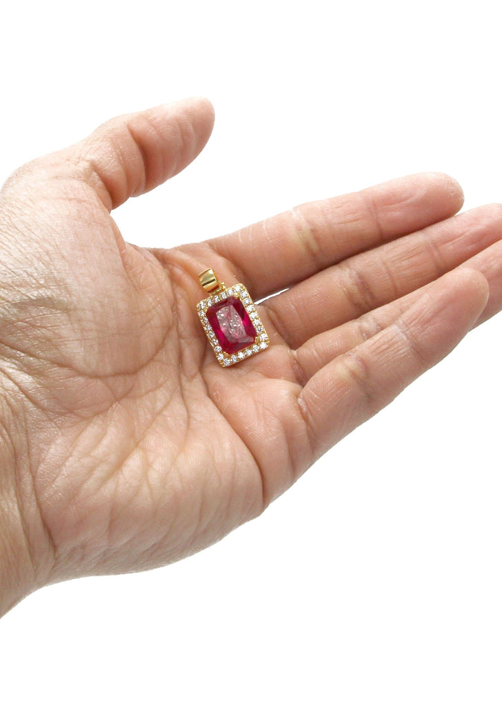 Gold Plated Ruby Pendant That Weighs 6 Grams. The Length Of The Pendant Is 1.1 Inches And The Width is 0.6 Inches.