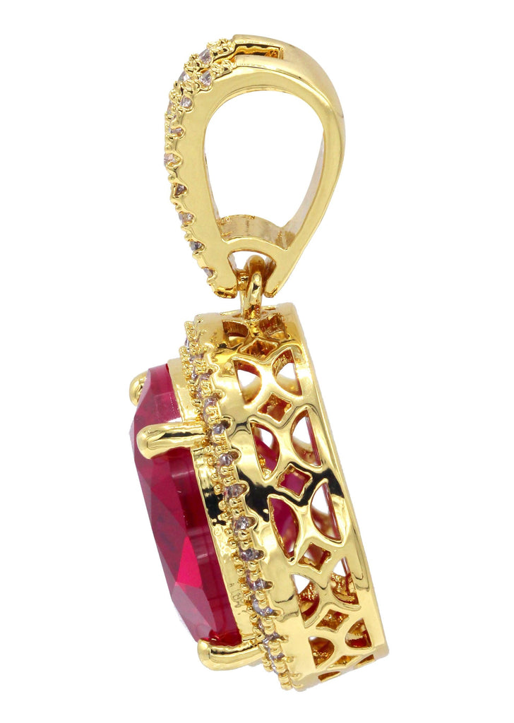 Gold Plated Ruby Pendant That Weighs 7.4 Grams. The Length Of The Pendant Is 1.2 Inches And The Width is 0.73 Inches.