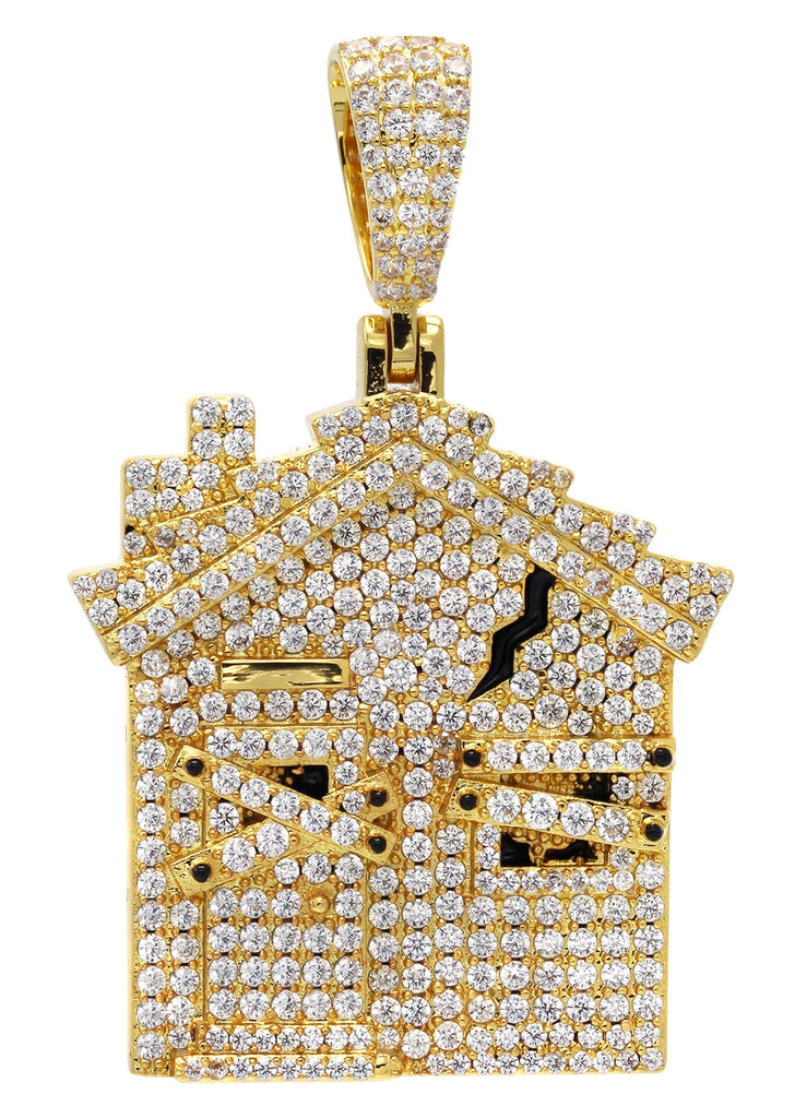 Mens Gold Plated Iced Out Pendant | 8.1 Grams