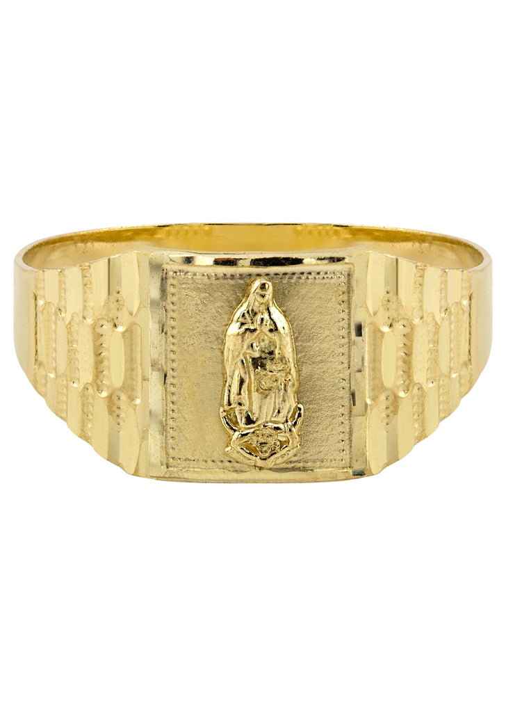 Mens Virgin Mary Signet Ring - 10K Gold | 2 Grams