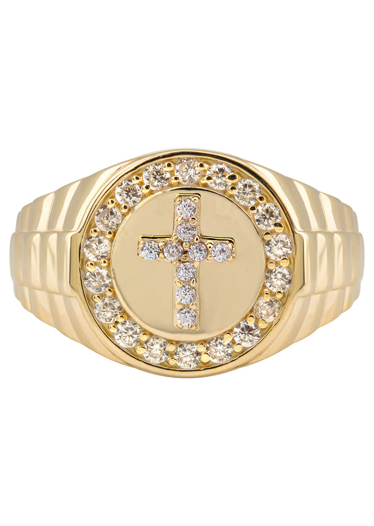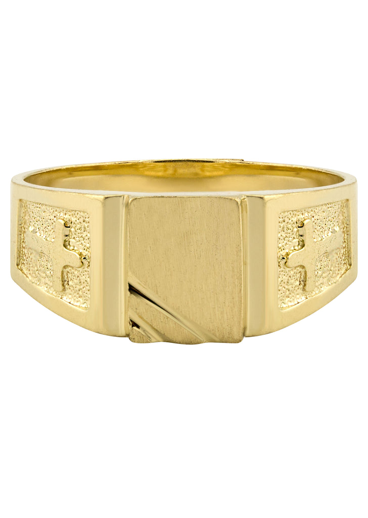 Mens Cross Signet Ring - 10K Gold | 5 Grams