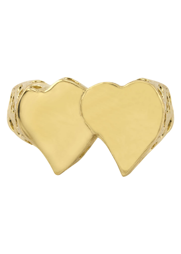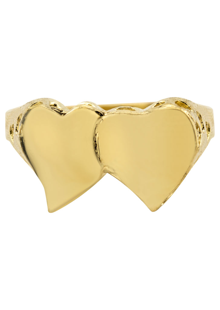 Mens Hearts Signet Ring - 10K Gold | 7 Grams