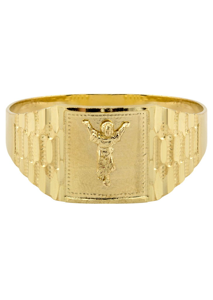 Mens Baby Jesus Signet Ring - 10K Gold | 2 Grams