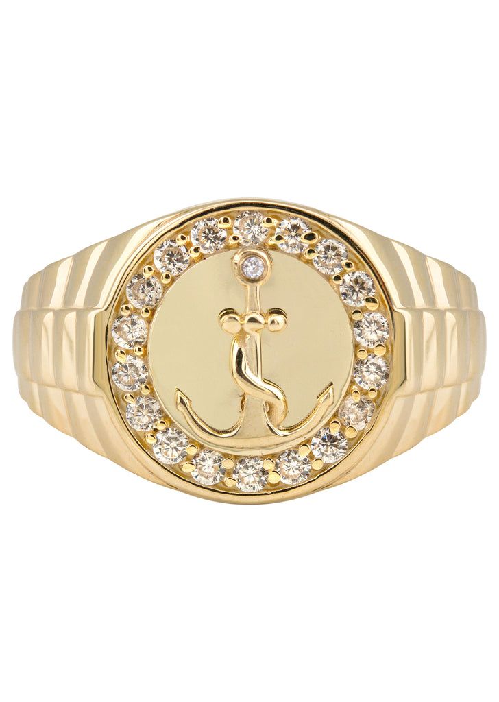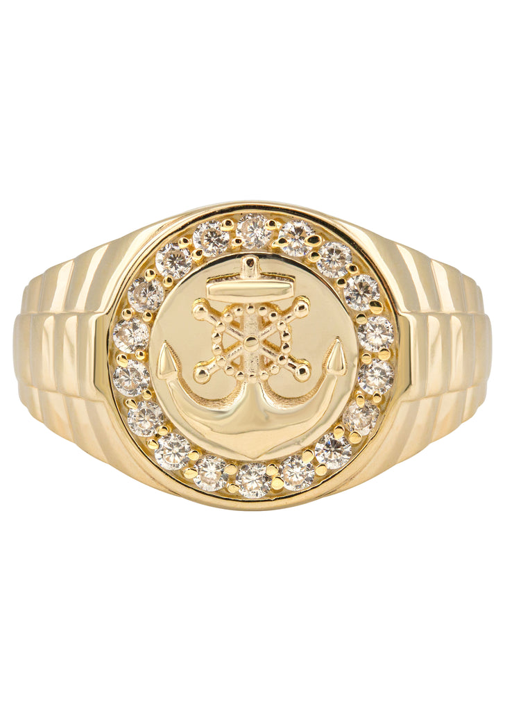 10K Gold Cz Anchor Ring For Men | 2.6 Grams