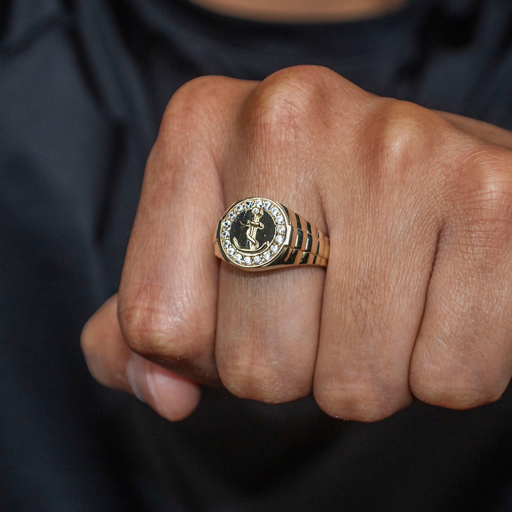 10K Gold Cz Anchor Ring For Men | 2.6 Grams