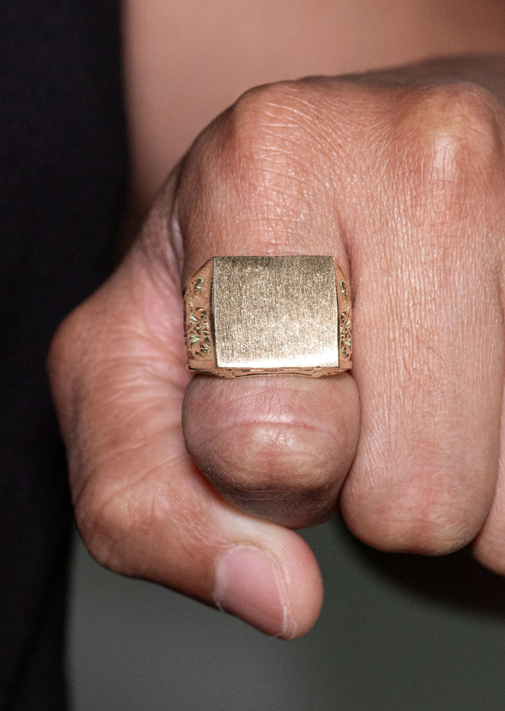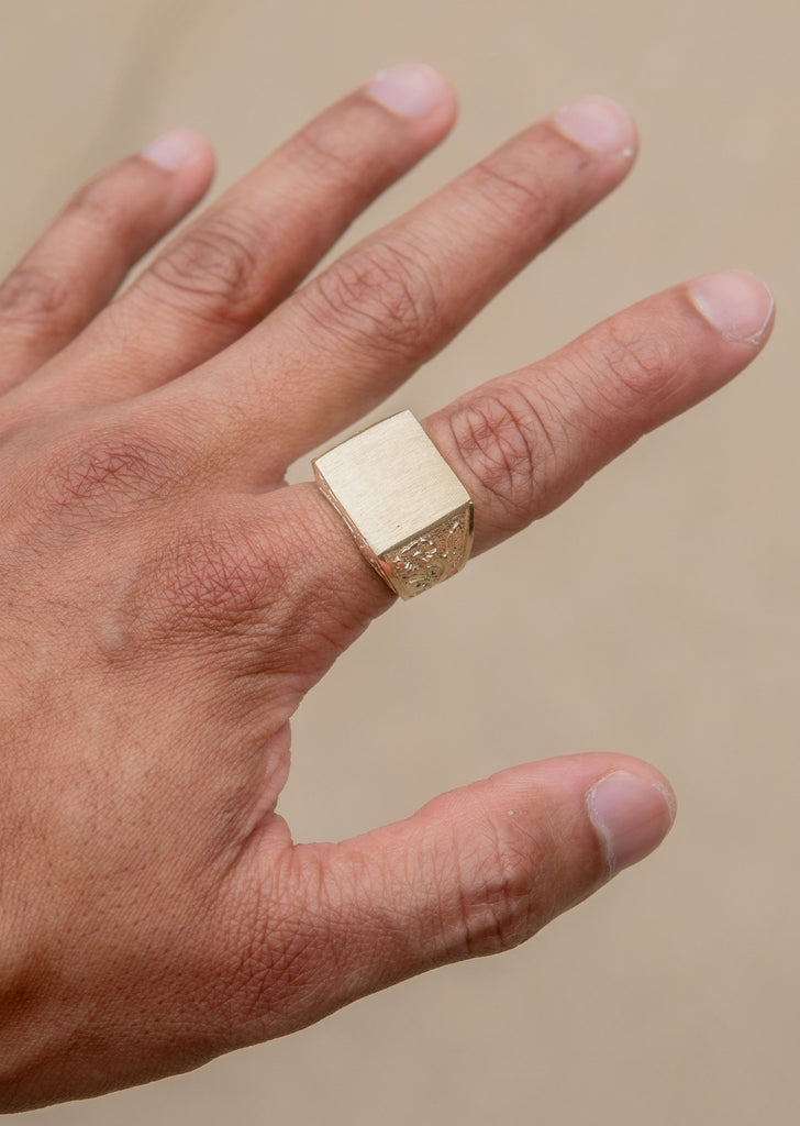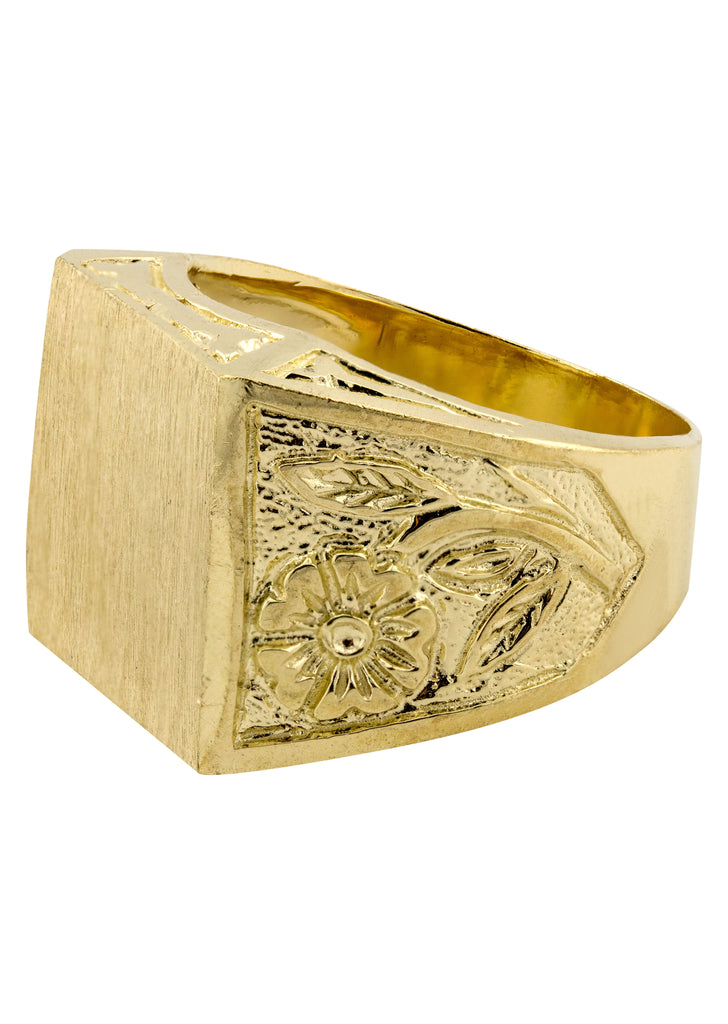 10K Yellow Gold Mens Signet Ring. The Ring Weighs Approximately 11.3 Grams With An Average Length Of 0.66 Inches And Average Width Of 0.9 Inches. Each Signet ring can be customized with an engraving. Write the engraving you want and we will customize it for you.