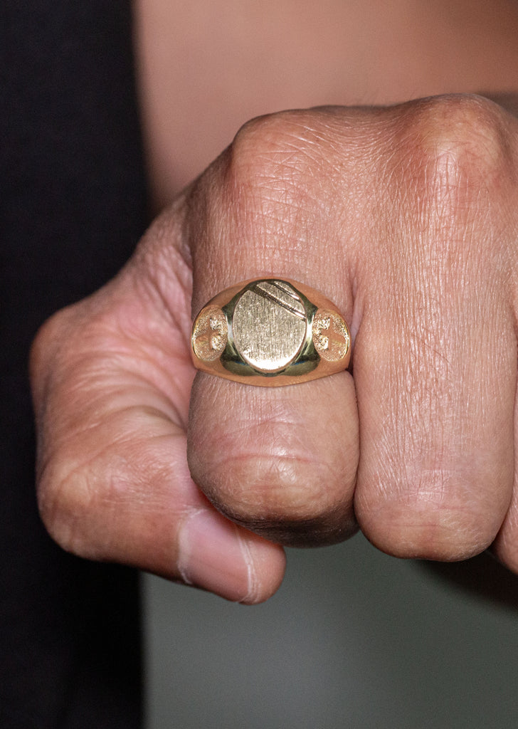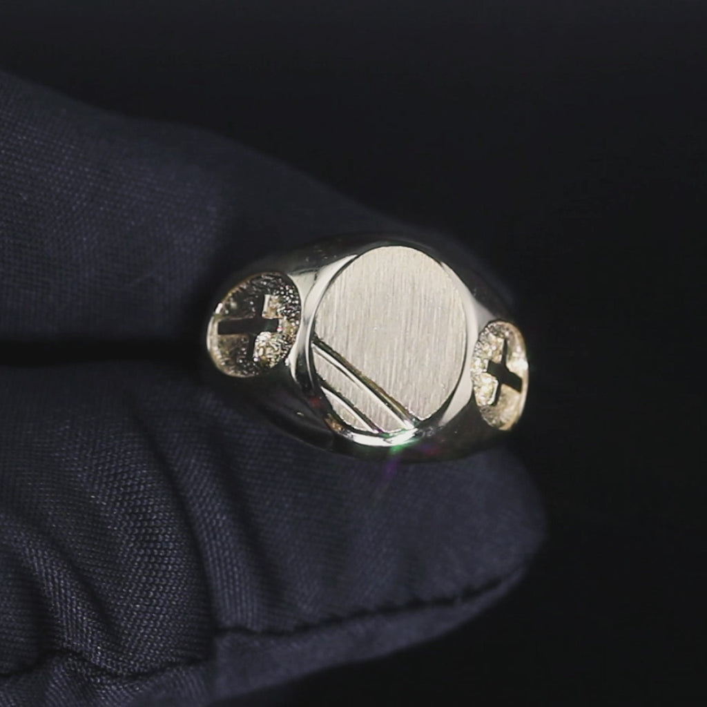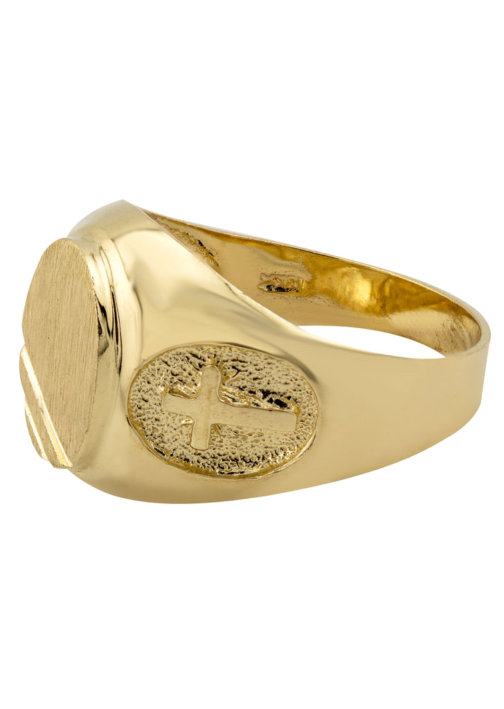 10K Yellow Gold Mens Cross Signet Ring. The Ring Weighs Approximately 5 Grams With An Average Length Of 0.6 Inches And Average Width Of 0.9 Inches. Each Signet ring can be customized with an engraving. Write the engraving you want and we will customize it for you.
