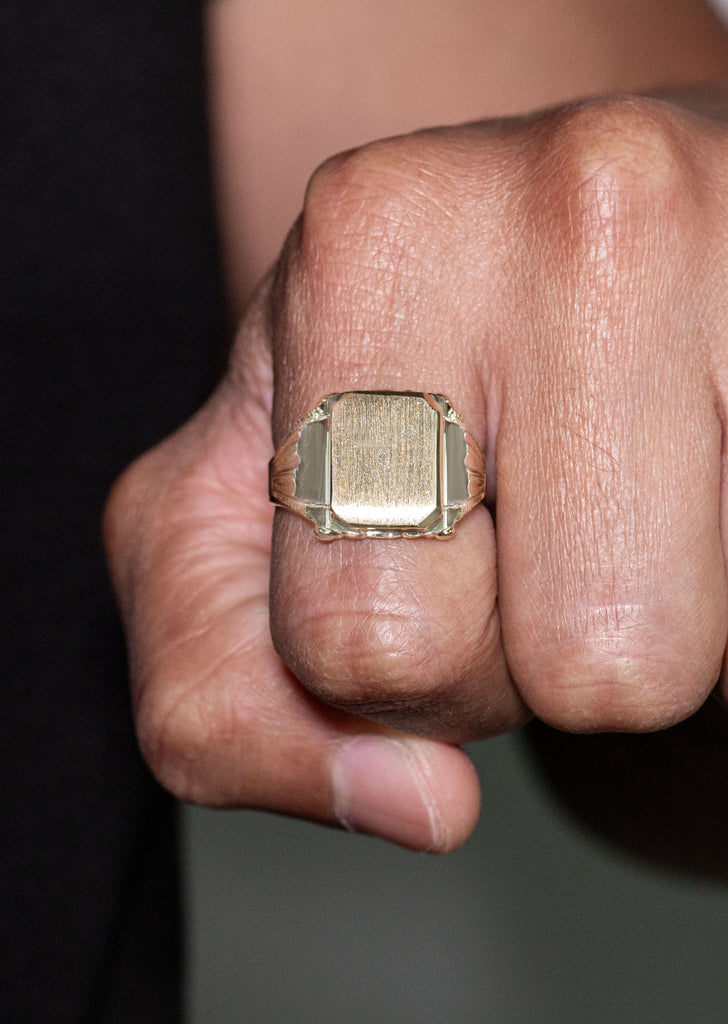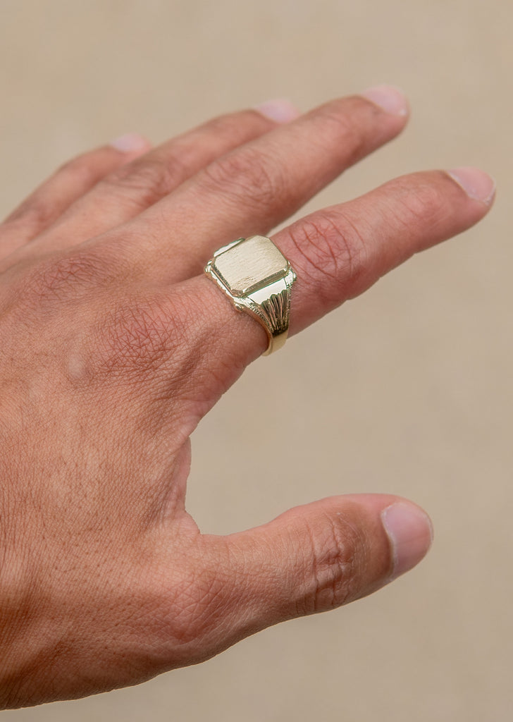 10K Yellow Gold Mens Signet Ring. The Ring Weighs Approximately 6 Grams With An Average Length Of 0.6 Inches And Average Width Of 0.9 Inches. Each Signet ring can be customized with an engraving. Write the engraving you want and we will customize it for you.