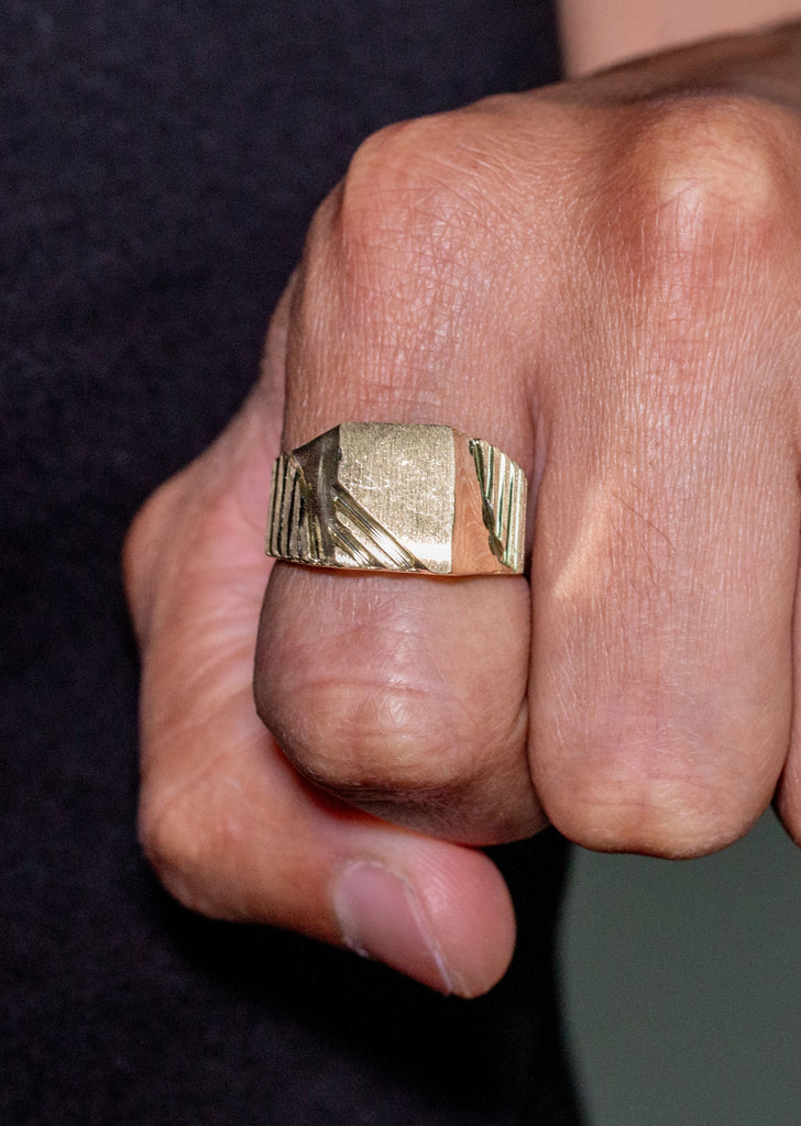 10K Yellow Gold Mens Signet Ring. The Ring Weighs Approximately 7 Grams With An Average Length Of 0.5 Inches And Average Width Of 0.9 Inches. Each Signet ring can be customized with an engraving. Write the engraving you want and we will customize it for you.