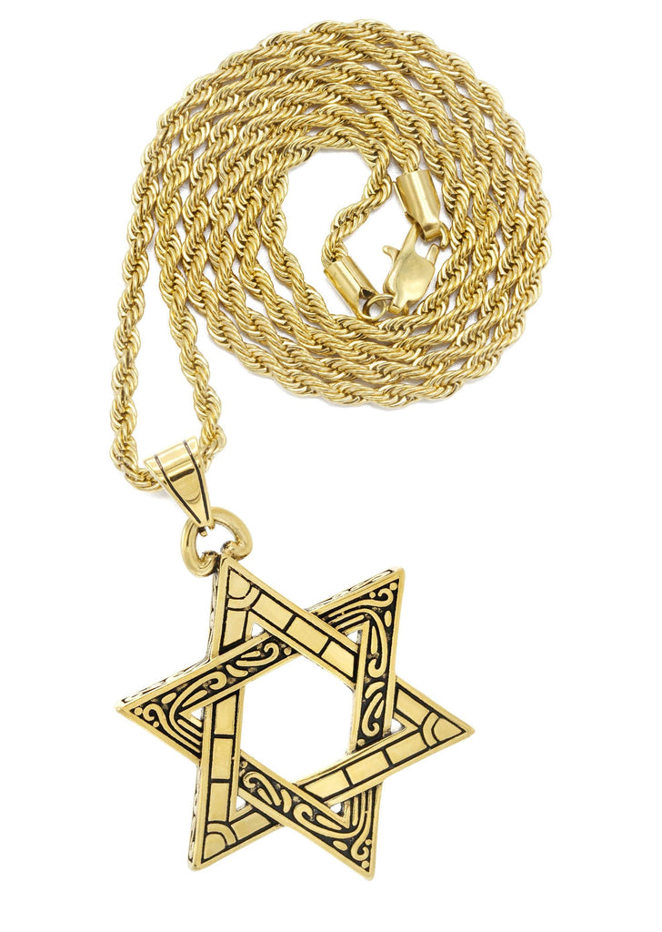 Mens Gold Plated Rope Chain & Chai Pendant | Appx. 19.4 Grams