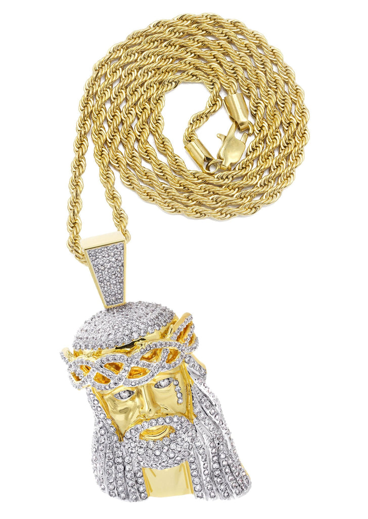 Mens Gold Plated Rope Chain & Jesus Piece Chain | Appx. 42.4 Grams