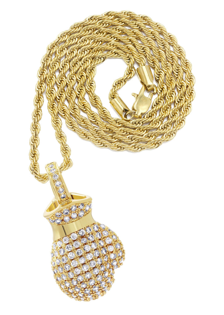 Mens Gold Plated Rope Chain & Boxing Glove Pendant | Appx. 20.2 Grams