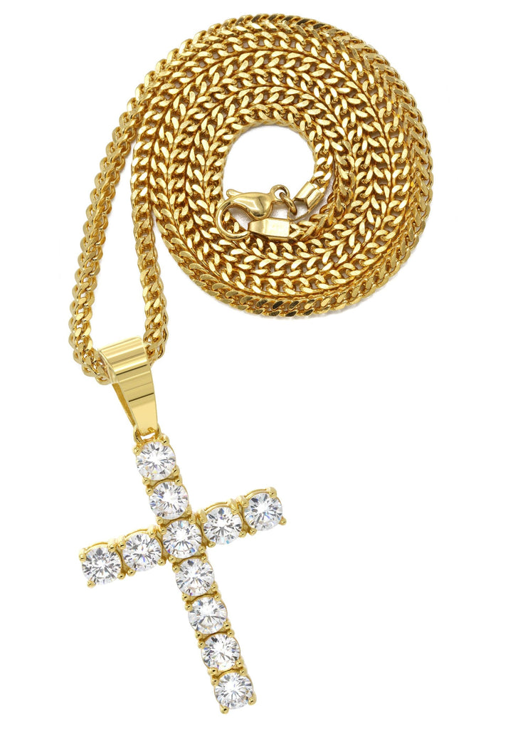Mens Gold Plated Franco Chain & Cross Pendant | Appx. 16 Grams