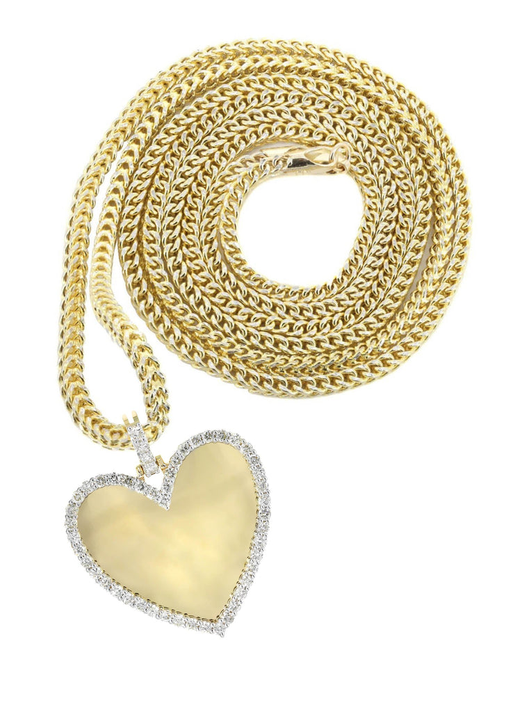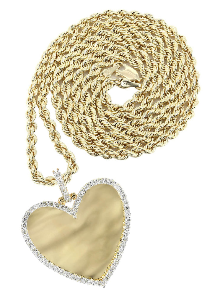 Diamond 10K Yellow Gold Large Heart Picture Pendant Necklace | 2.91 Carats | Appx. 21 Grams
