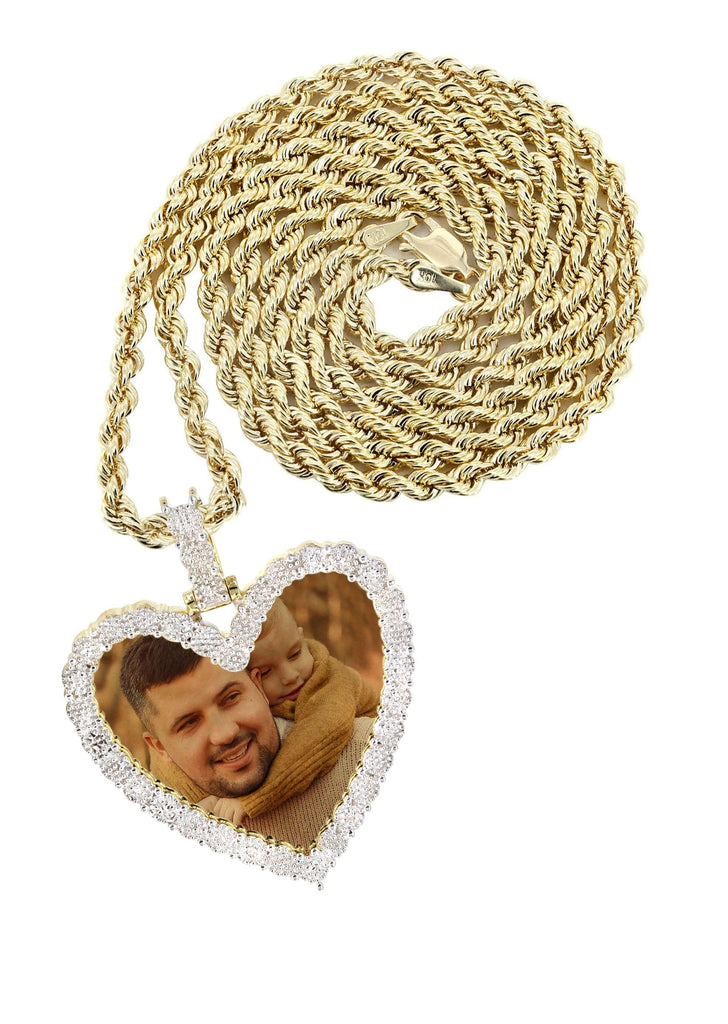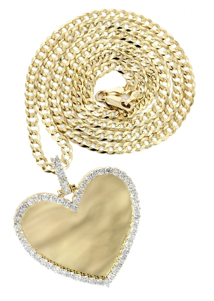 Diamond 10K Yellow Gold Small Heart Picture Pendant Necklace | 1.37 Carats | Appx. 15 Grams