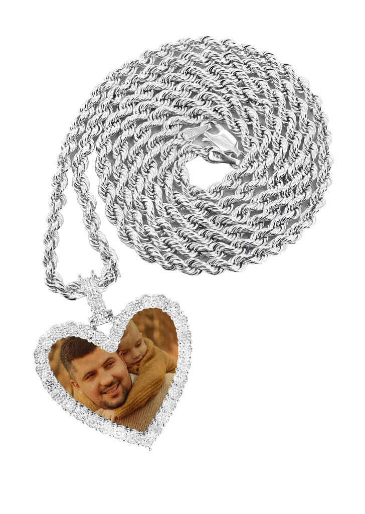 10K White Gold Large Diamond Heart Picture Pendant Necklace | Appx. 24 Grams