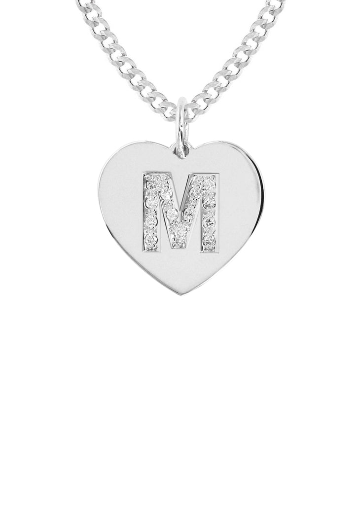 14K White Gold Diamond Initial Heart Pendant Necklace